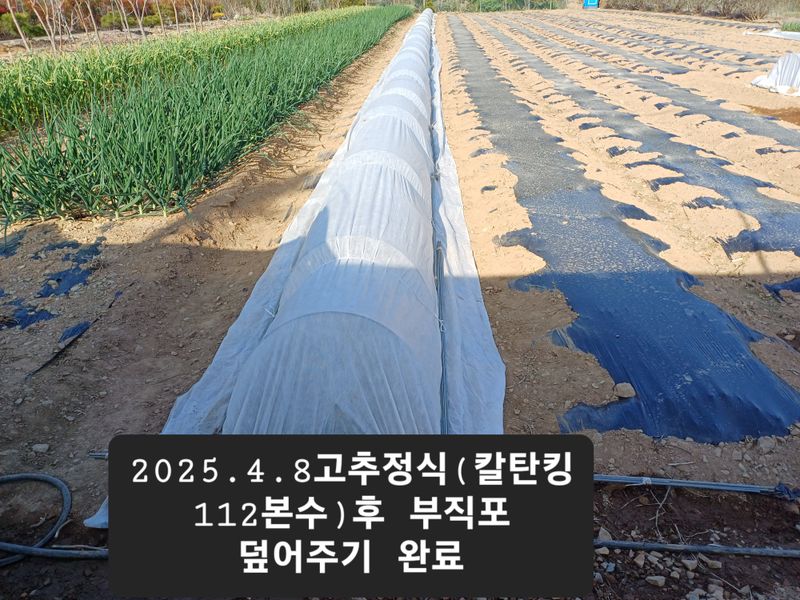 2025. 4. 8. (음 3. 11) 맑음. * 고추 정식. _ 품종: 칼탄 킹. _본수 :112. _부직포로 덮어주기 끝