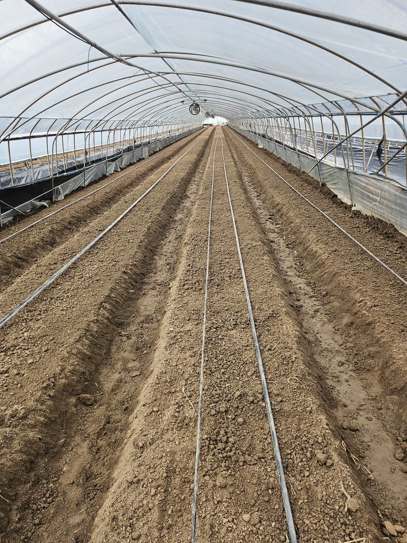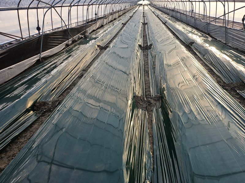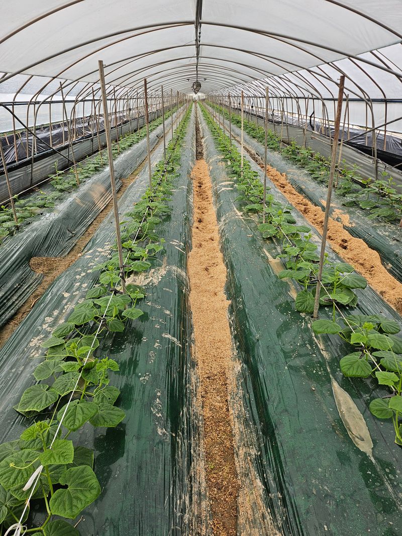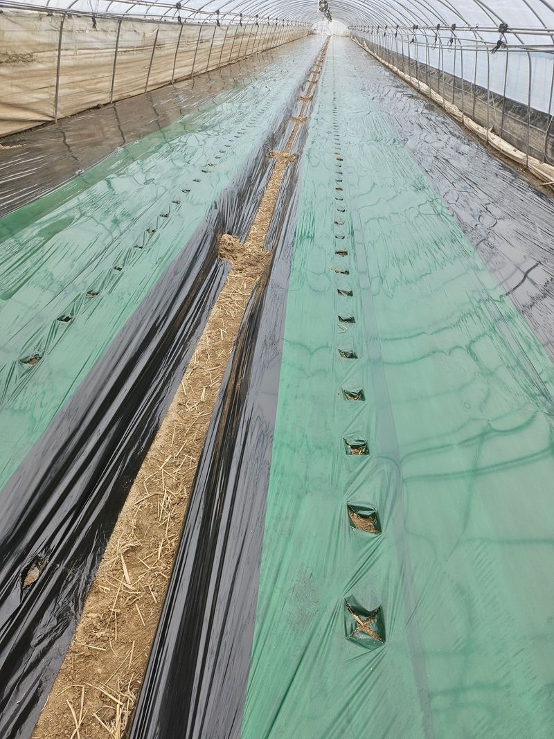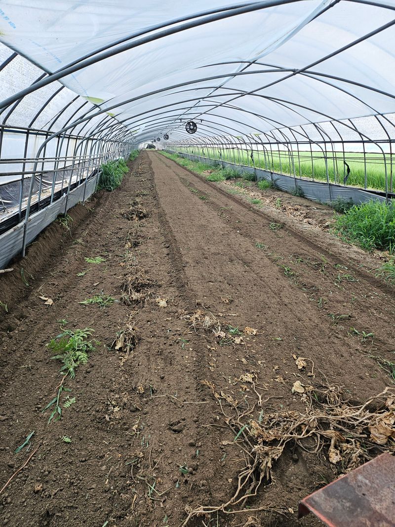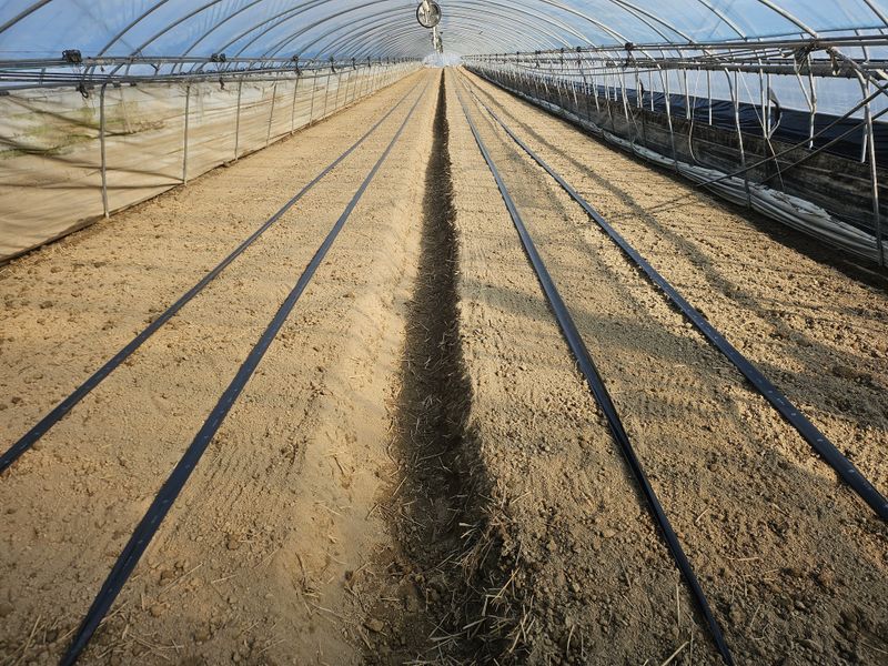 오이 철거작어 끝나고 수박정시준비중 짚 펴는 작업. 합니다