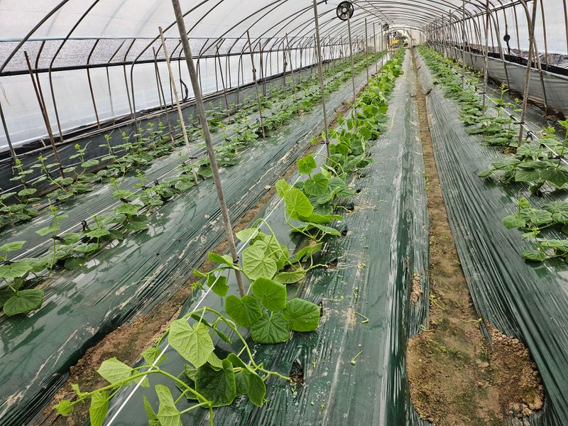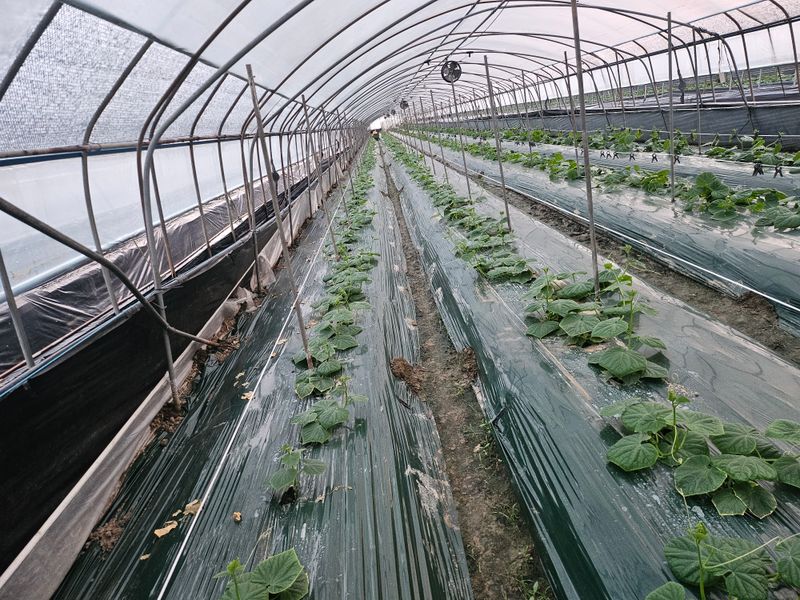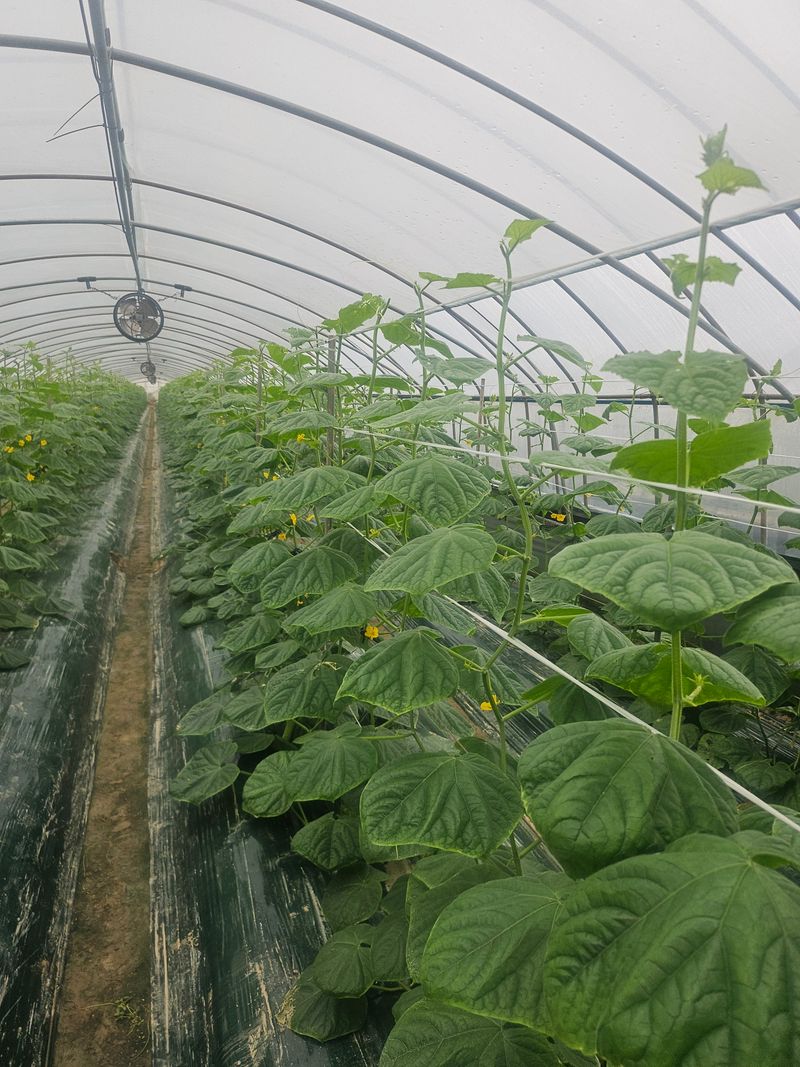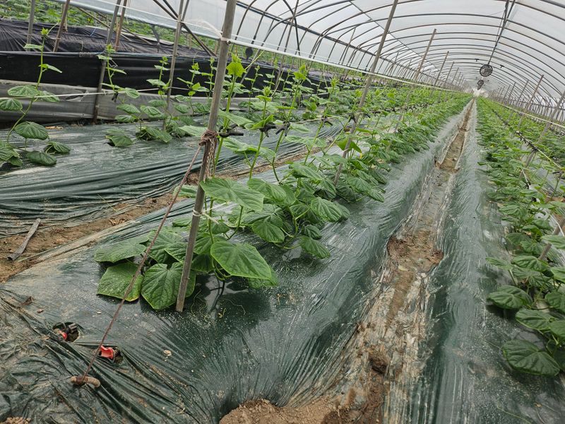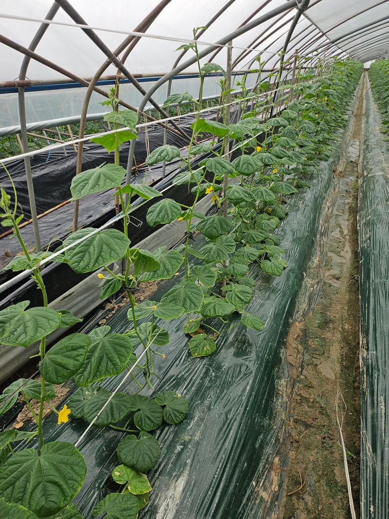 올해는 총채발생으로 인하여 작황이 매우 부진하다한참 수확할 시기인데 아직도. 크지않아. 올리는 오이 순이 있다