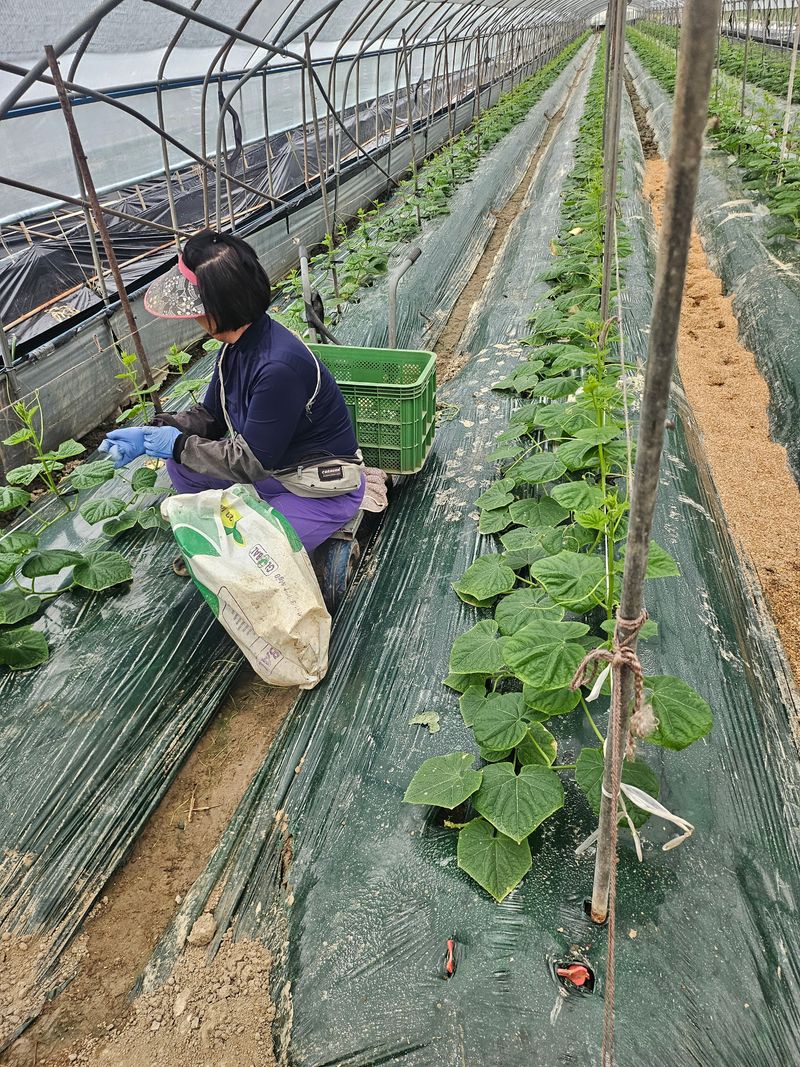 수염따기.오이 순 끼우기작업