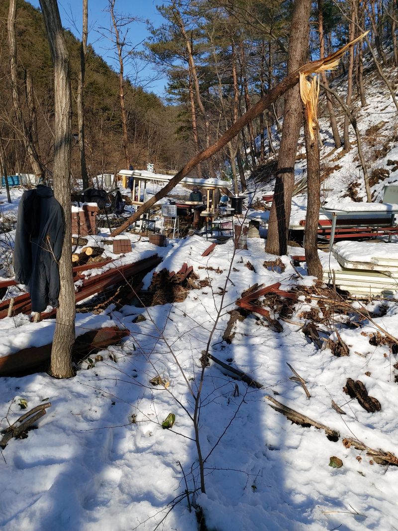 드릅니무 관리 눈이와서 작업이 어렵군요 진입로 관리