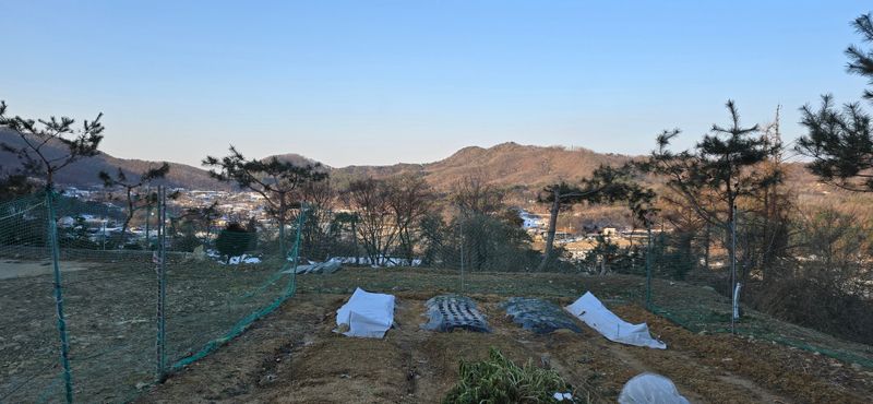 멀칭위에 왕겨뿌리고 비닐 방한했습니다. 추위가 온다해서 덮어주고 왔습니다.(11월29일)