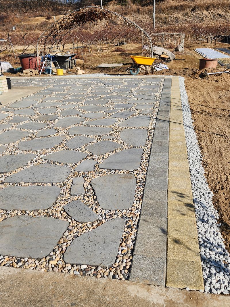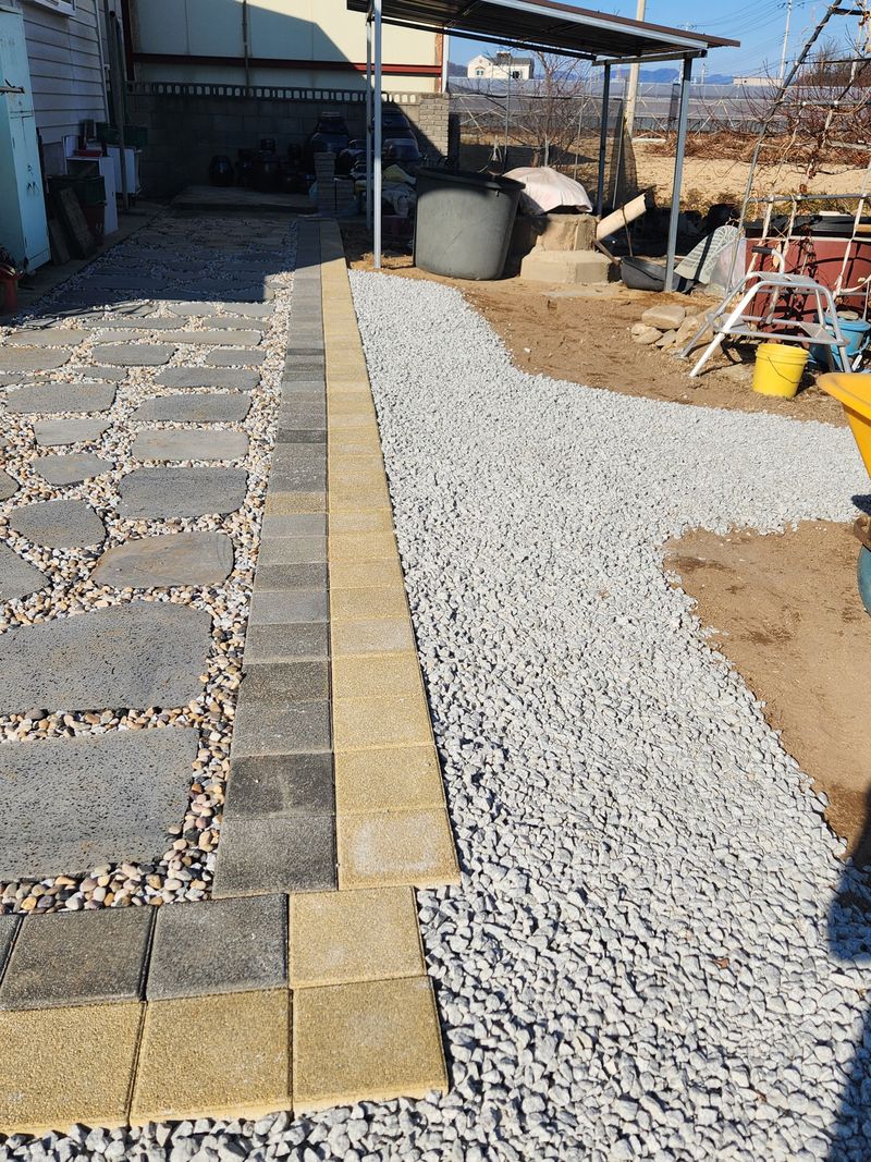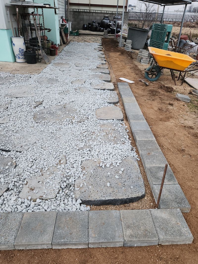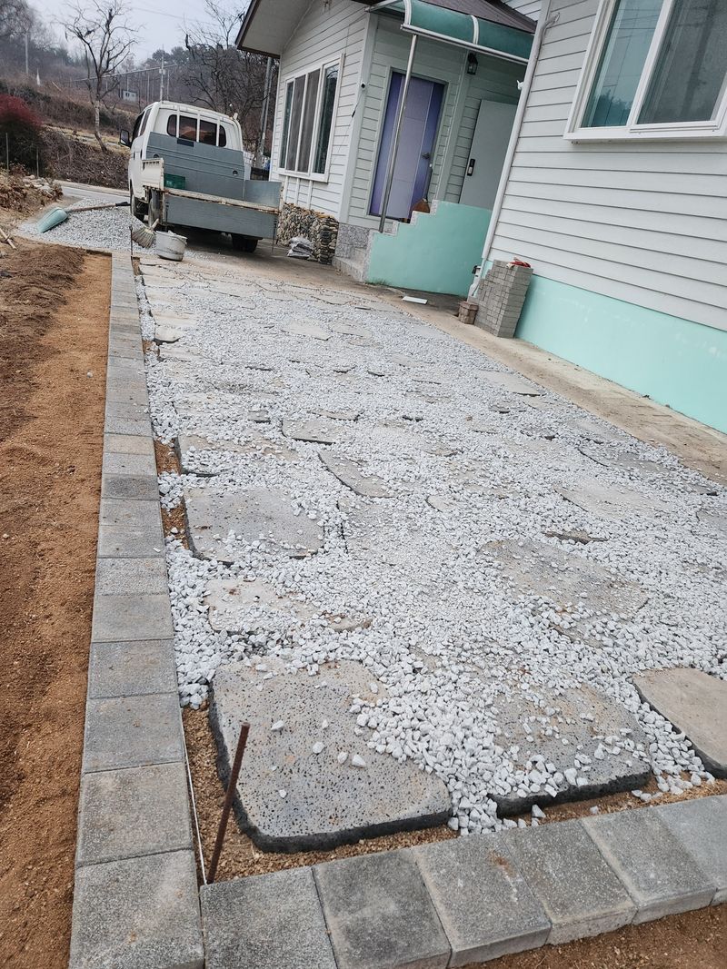 마당자갈깔기작업 ●보도블록100장사옴 100000원 어모 평안건설