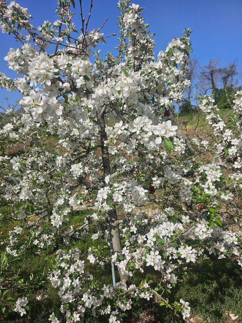 사과과수원 방재 및 적화 작업 하고 있습니다