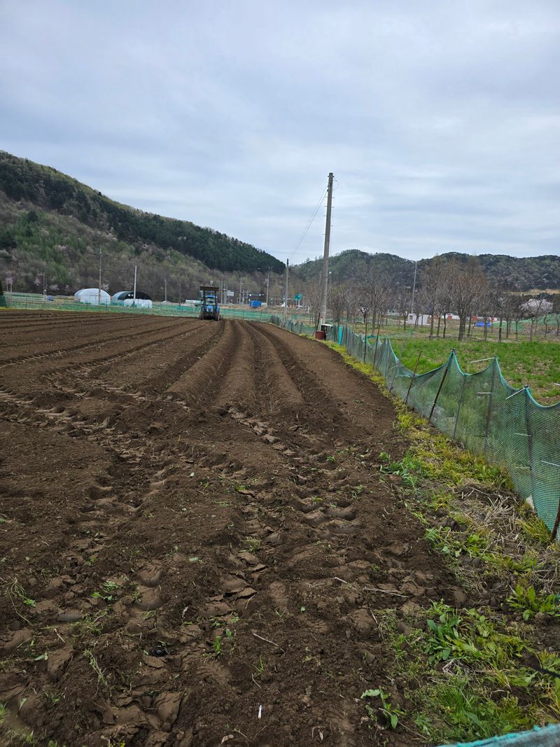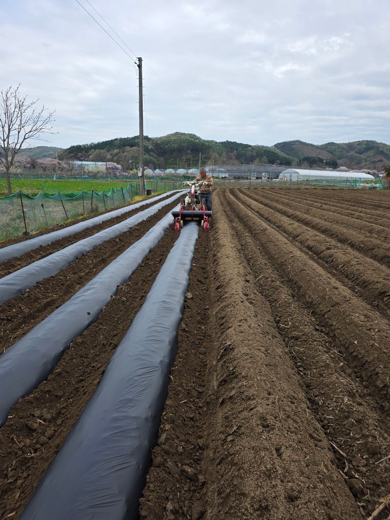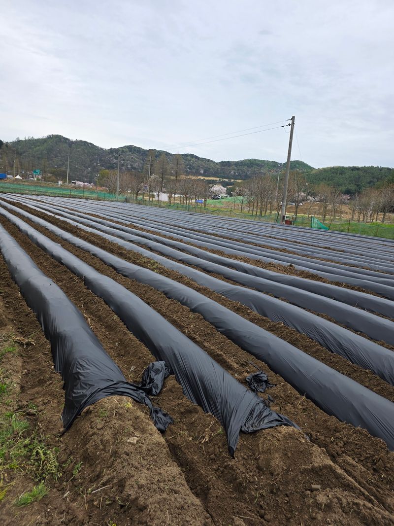 퇴비,석회,토양살충제살포후 로타리 작업및 비닐멀칭