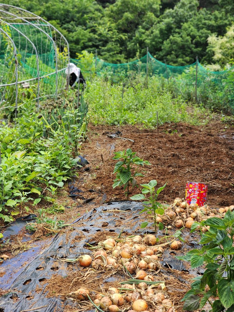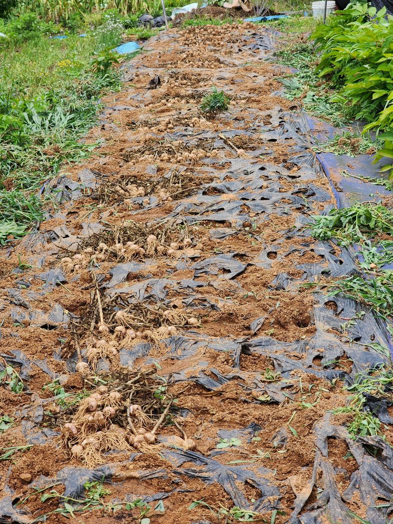 마늘수확 했습니다 메마라서마늘크기가많이적습니다 집에서먹는것은이상없습니다