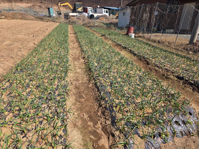 마늘 부직포 걷기