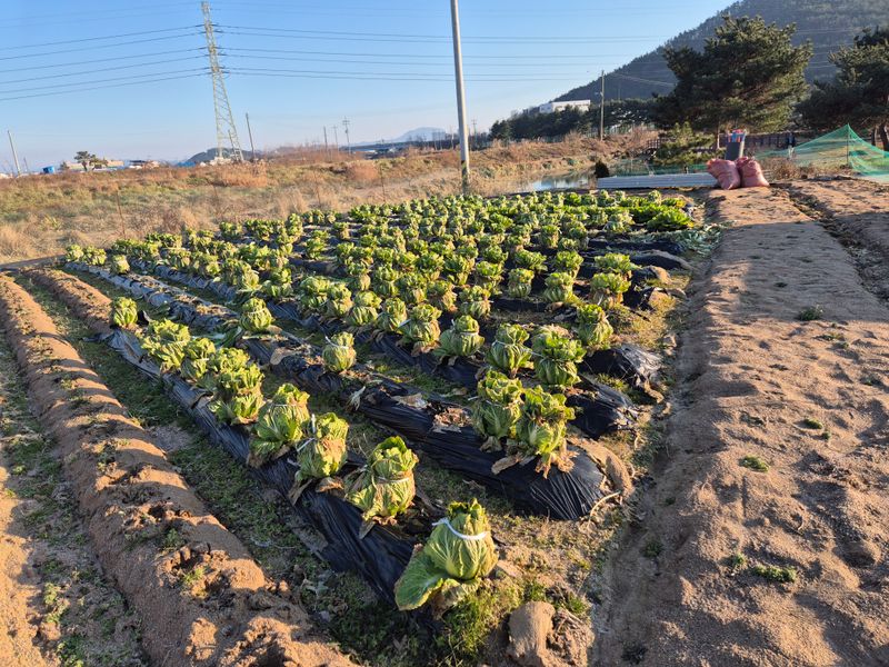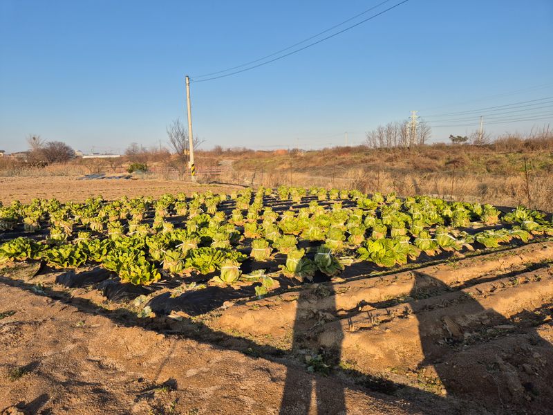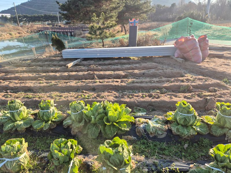 에효~~! 밭에 배추가 아직도 주인을 기다리고 있네요~~~속이 덜차서 묶어놨드니 제법 좋아졌다.옆에는 체류형쉼터(농막)10평(33m2)지으려고 각 파이프 갖다 놓았다.^^
