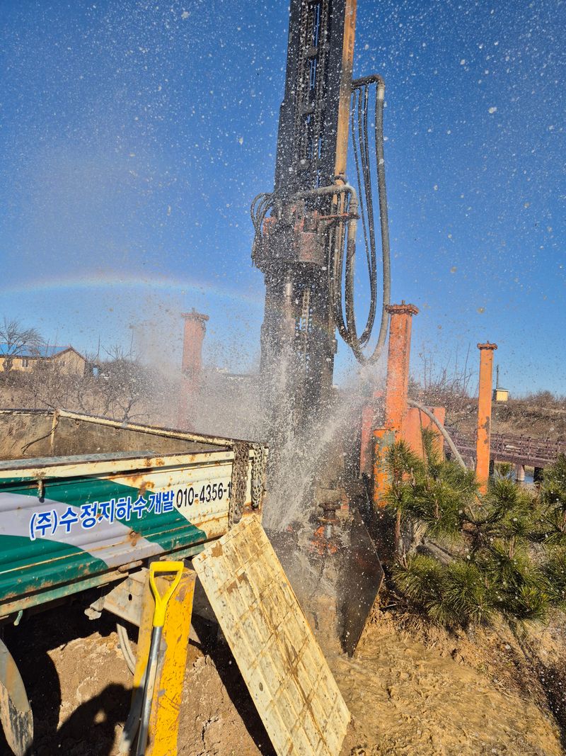 밭에 농사용 관정파기 시원하게 물이 쏟아져 나왔다. 물줄기 그 속에 피어 오른 아름다운 무지개 뭔가 좋은 느낌? 내년에 대박 나려나? 한껏 기대해 본다.~^^
