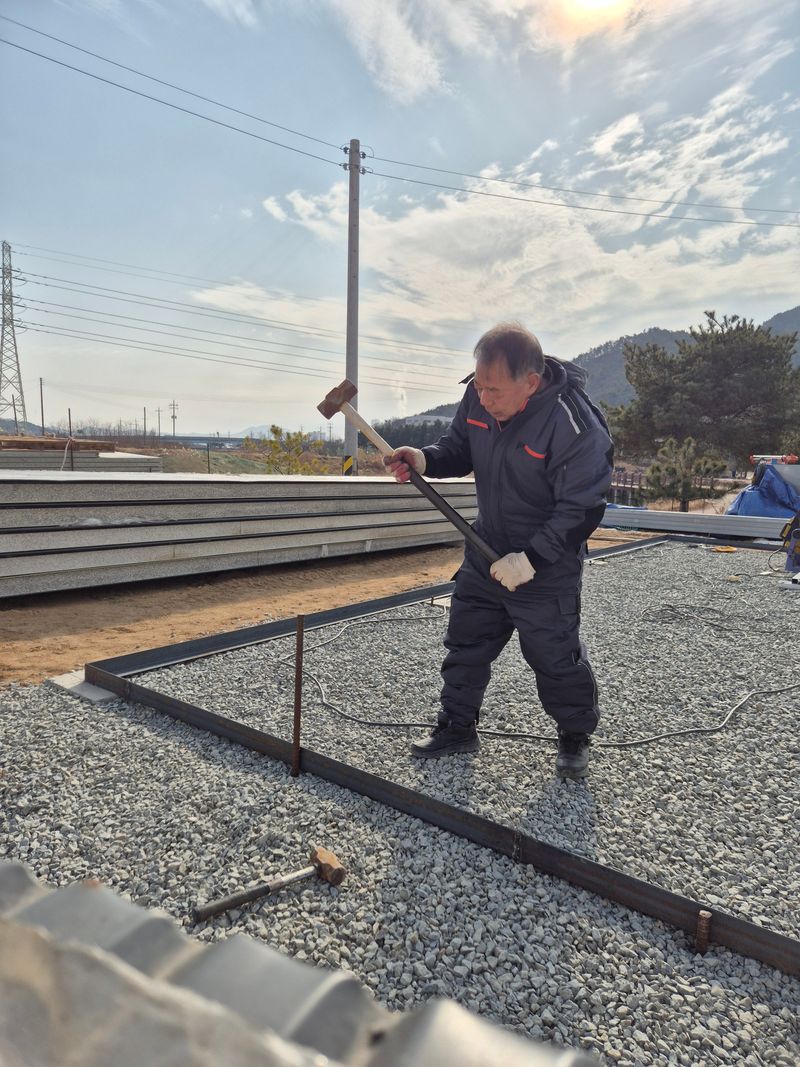 체류형쉼터 혹여라도 태풍에 견딜 수 있게 22미리 철근 타공 중 휴~~ 힘드네요^^
