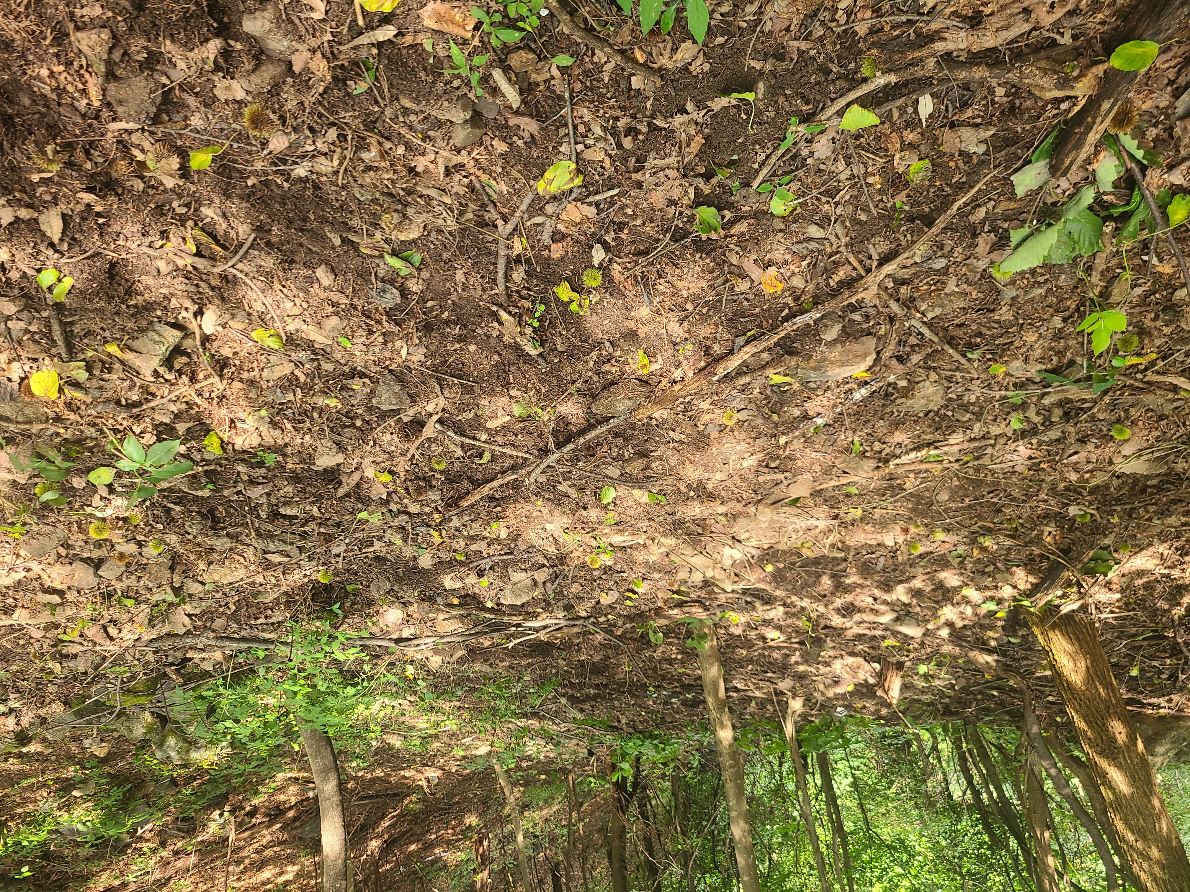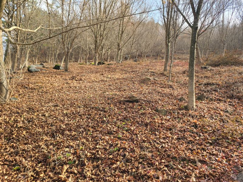 감나무밭과산속에 자연산버섯 올라왔는지화인차 산에올라왔읍니다 메되지가여기저기 산이멀정한 곳이별로않보 입니다 유해조수신고를했지만 깊은산이라서 되지를잡을수 없네요 거정입니다 장덕리산 27-2외