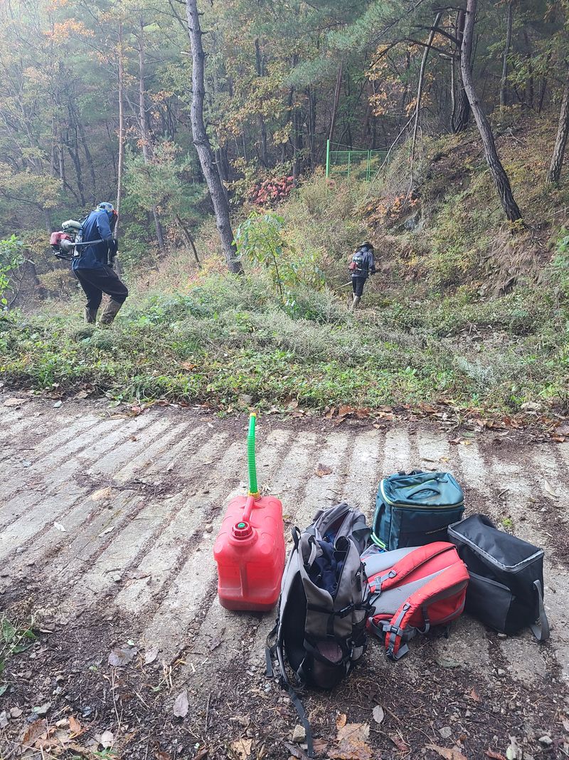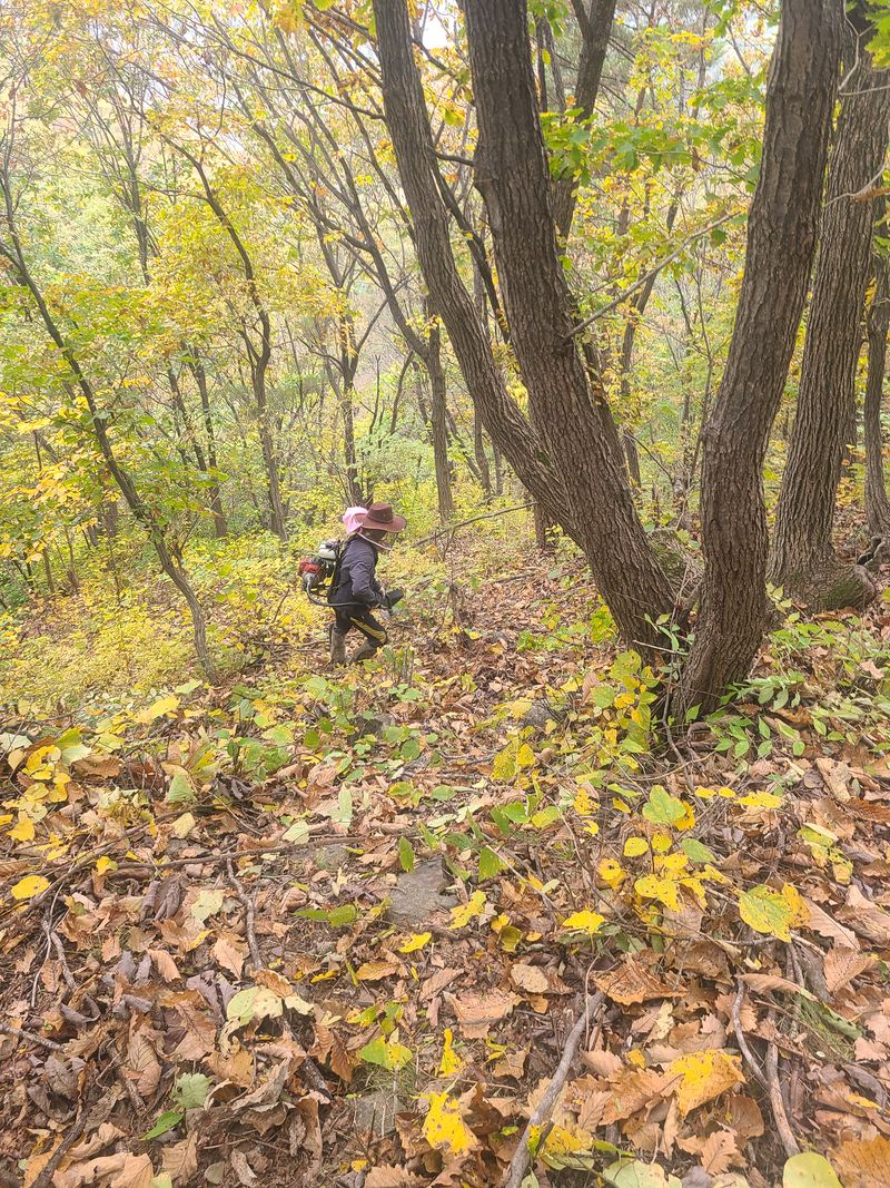 송이능이자연산 버섯채취를위한 길을예초기로 정비하고있읍니다 올해도어김없이 계절은 어절수없읍니다 아침저녁으로 쌀쌀합니다 세벽으로는 잠바를입어야 할것같읍니다