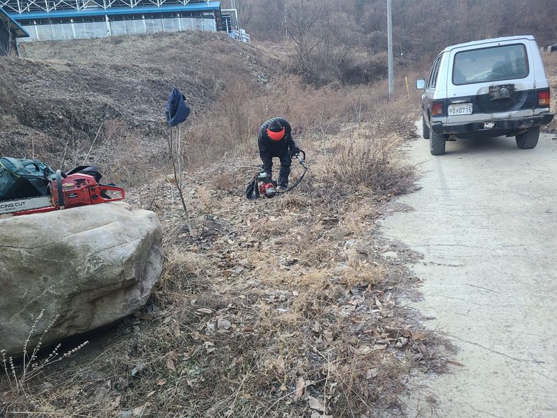 24년 못다한일들을 관핵호두나무밭에 기계톱과예초작업을 하는중입니다 올해는할일들이너무많아서 년초부터일직작업을 하는중입니다 열심히하여 올해는좋은결실을 보았으면합니다