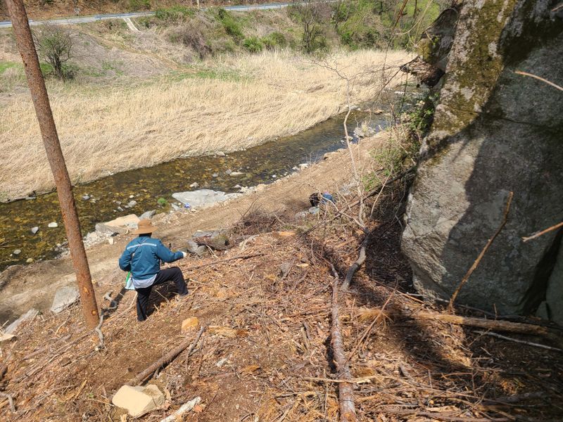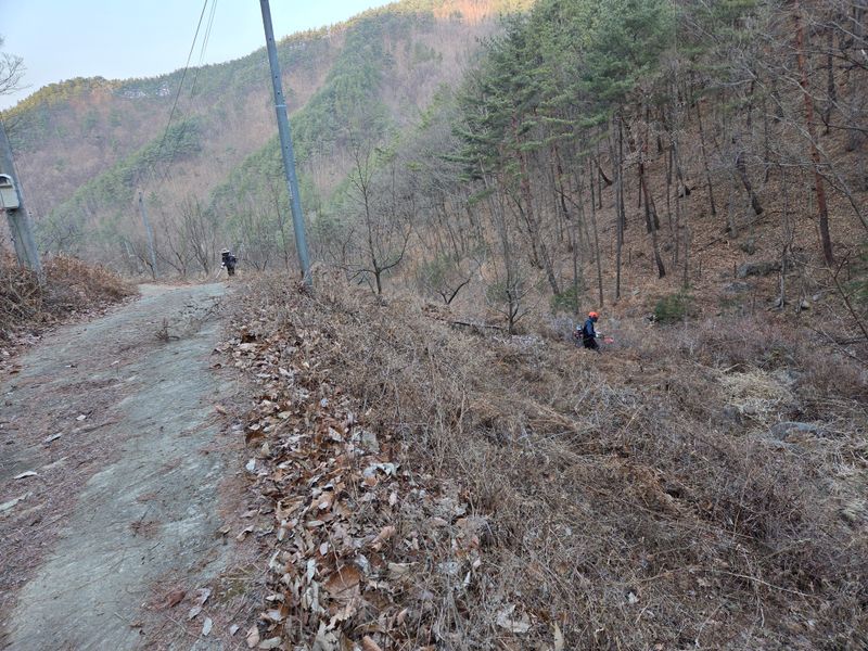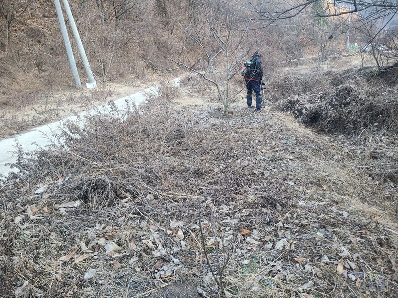 좋은장덕리 산 22번지에 예초 작업을 하고 있습니다산양삼을 심은 지역이라서예초 작업을 잘해야품질이 좋은산양 산삼을 생산할 수 있어요