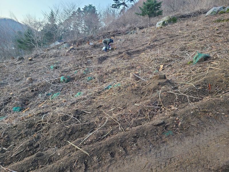 한식날 입니다 덕지리산21-1 벌채후가시없는두릅나무를 심고 심는중입니다
