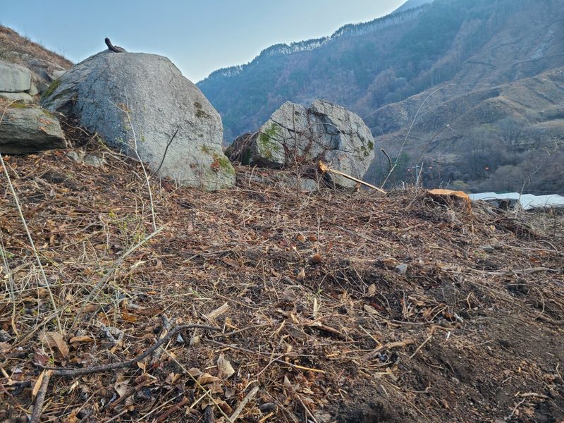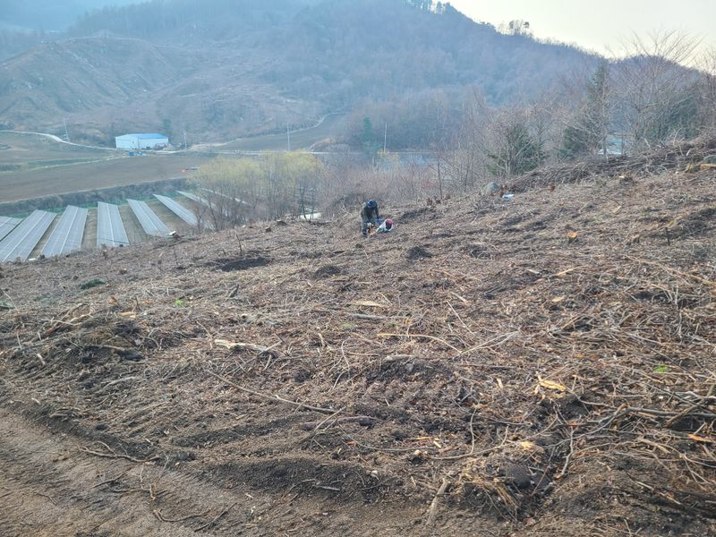 김천시부항면 23년에구입한산입니다 계천에는 맑고깨긋한물이흐르고있읍니다 수확벌체후더덕과도라지 싸앗을 심고있읍니다 잘자라서 많은수확을기대합니다
