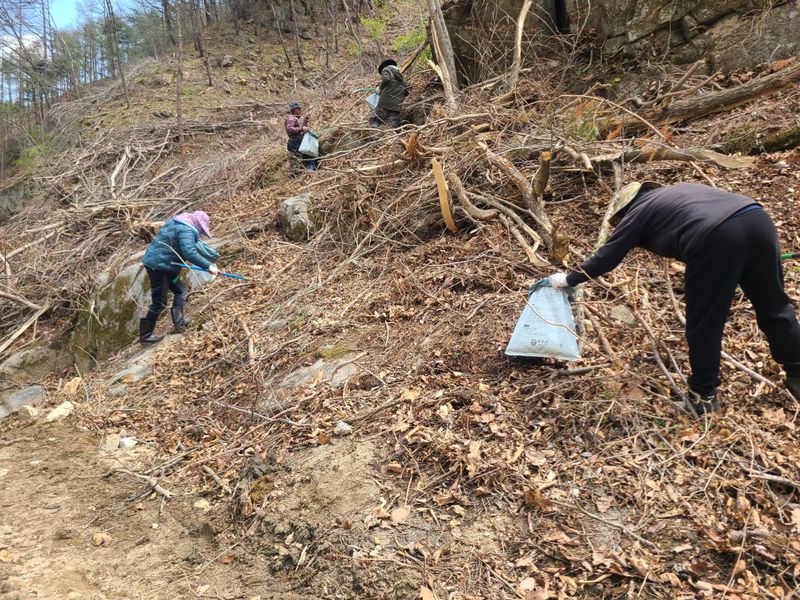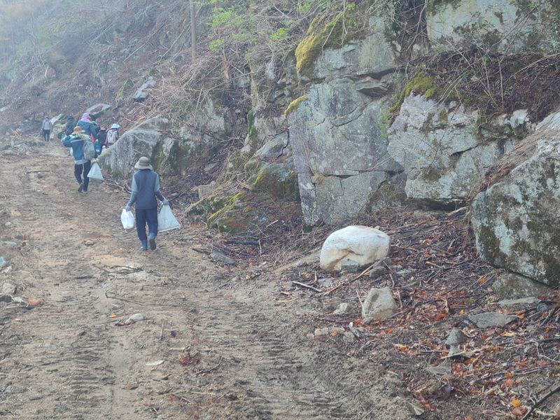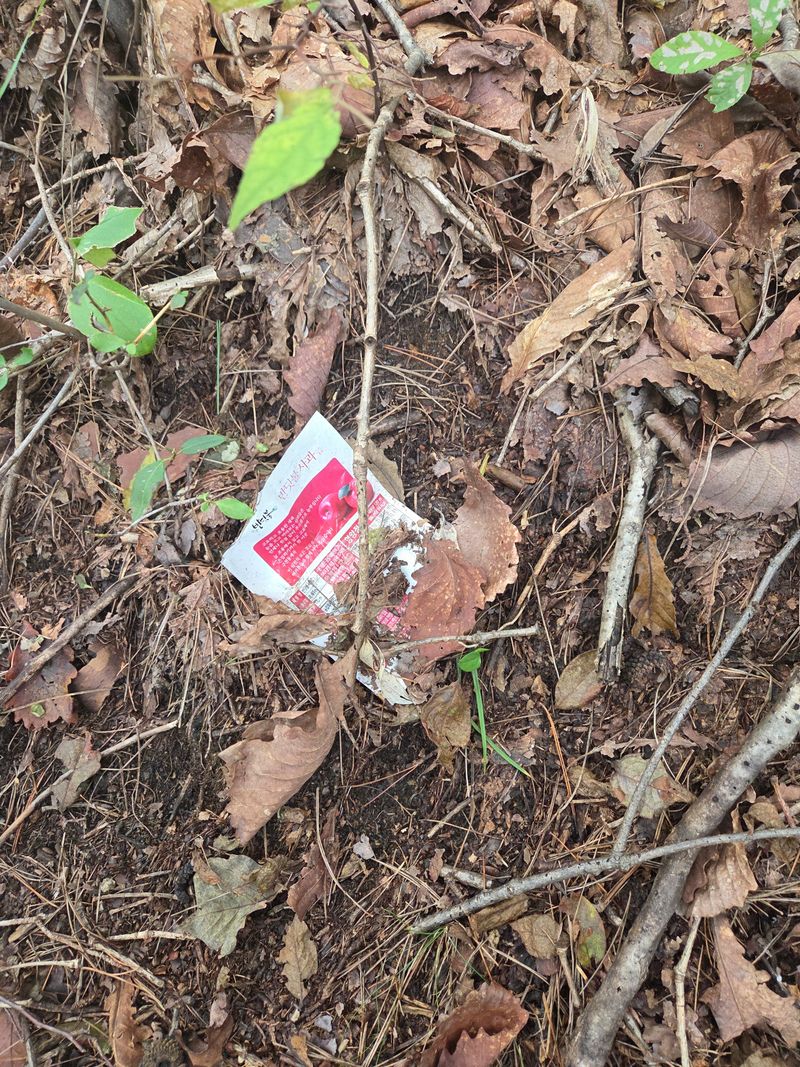 오늘은 버섯채취를하기위해 산에올랐읍니다 무단침입한 버섯채취 도적놈들이 무단 쓰래기를 마구버렸네요