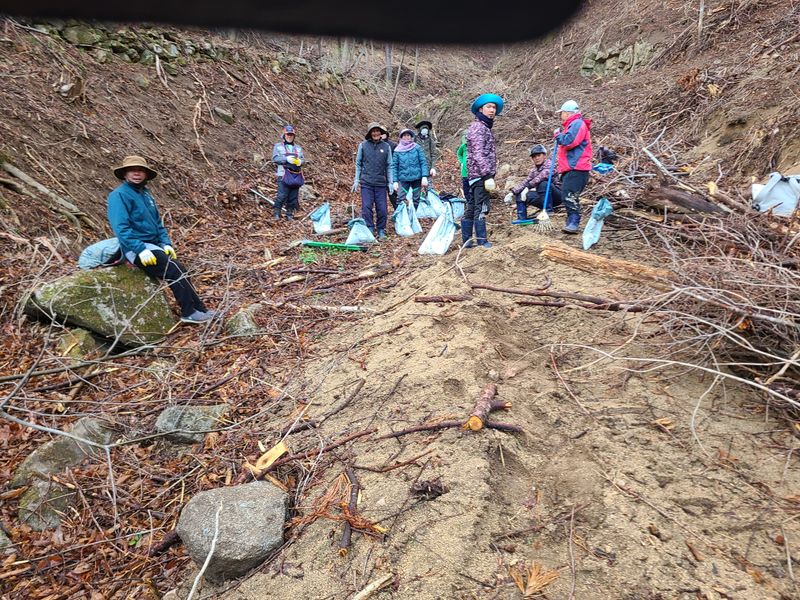 내일비도온다하여 세벽부터 배수로 정비중입니다 오랜많에 삽과굉이로수작업을하니너무 힘드네요 장덕리산54-1 외