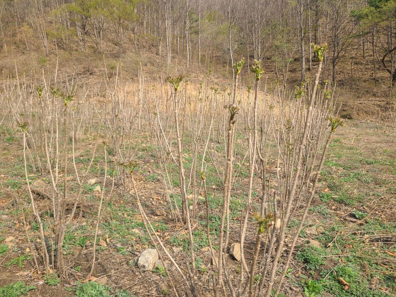 오늘은드릅밭에 와서 수확날짜를 확인하고있읍니다 올해는냉해피해때문에작년만 수확이 못할것같내요