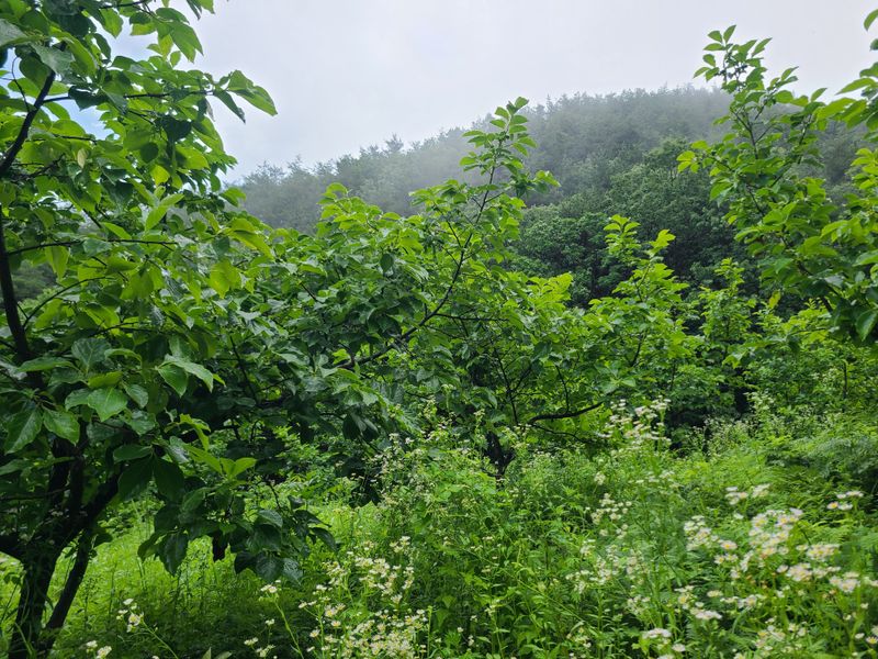 7월에첮날 모처럼 장마비가 오지않아서 세벽에호두나무밭에 풀베기를하는 중입니다 산에 서일을하다보니 팝모닝 카메라가 잘않되어서 영림일지 쓰는대 부편합니다 장덕리산21-1