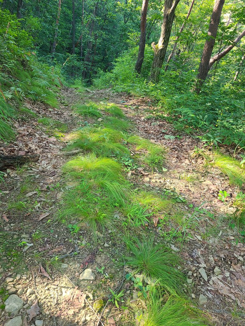 올 봄에파종한 더덕 도라지보다 풀이너무많이자라서 어린 더덕 도라지가풀을이기고 잘자라주었으면합니다 금평리산