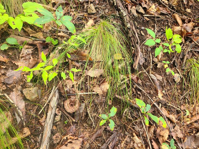 모처럼 올해 작년에 도라지씨앗을 파종한도라지가 얼마나자생했는지 확인차 산에올라와보니 많이오라왔읍니다 주변을 살펴보니 자연산 영지버섯도보이고 송이버섯밭 주변이 올해는 만이생산될것갖읍니딛 장덕리산22