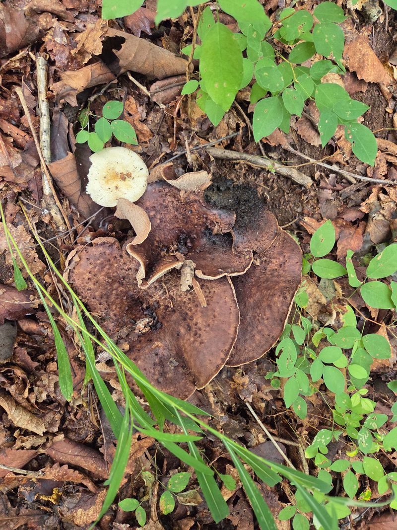 산에오르니ㆍ늦가을송이버섯이 종자번식에 으해서 송이종균 포자를형성중이내요 참나무에는 따발이버섯이 많이형성되엏내요 된장찌게에 너어서 끄려드시면 최고에 맞입니다