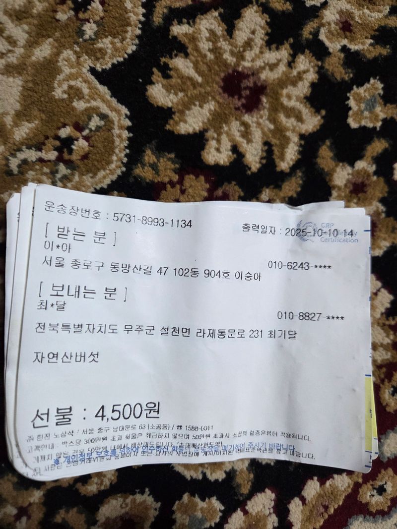 오늘은큰대상이 능이버섯을 103밖스나판매 했내요 항상감사합니다
