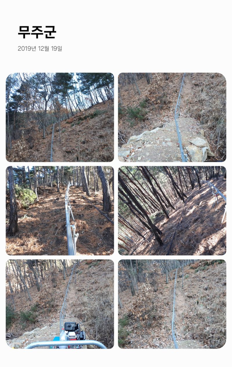 가을철 송이ㆍ능이버섯 채취작업을 하기위해서 모노레일 점검하기위해서 점검중입니다 올해는 버섯채취를 많이생산하여 돈을많이 했으면 좋겠읍니다