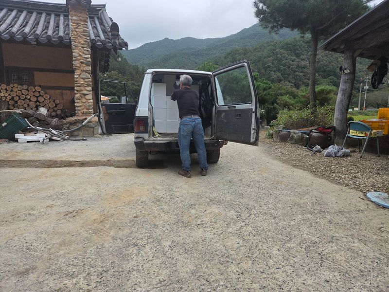 아침저녁으로 시원한 바람이부네요 표고재배사에 물작업을 하고있읍니다 올가을에는 질좋은 표고를 만이 따으면합니다 장덕리산54-1