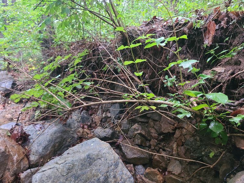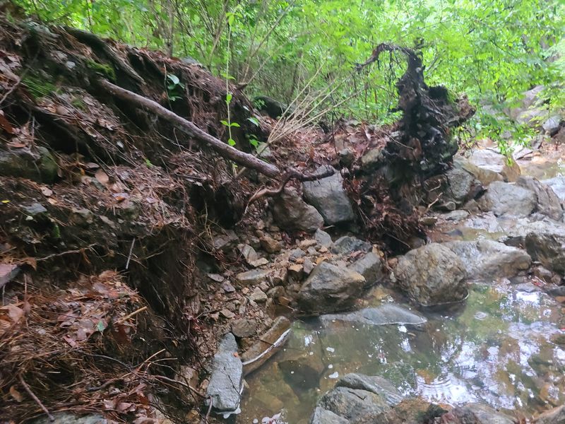 긴장마가시작되었읍니다 비가밤사이너무많이 와서 산사태 가났읍니다 계곡수작은 땜에는 토사가많이 싸였내요 장마가 끝나면포크레인으로 작업을해야할것 갓읍니다 장덕리산22
