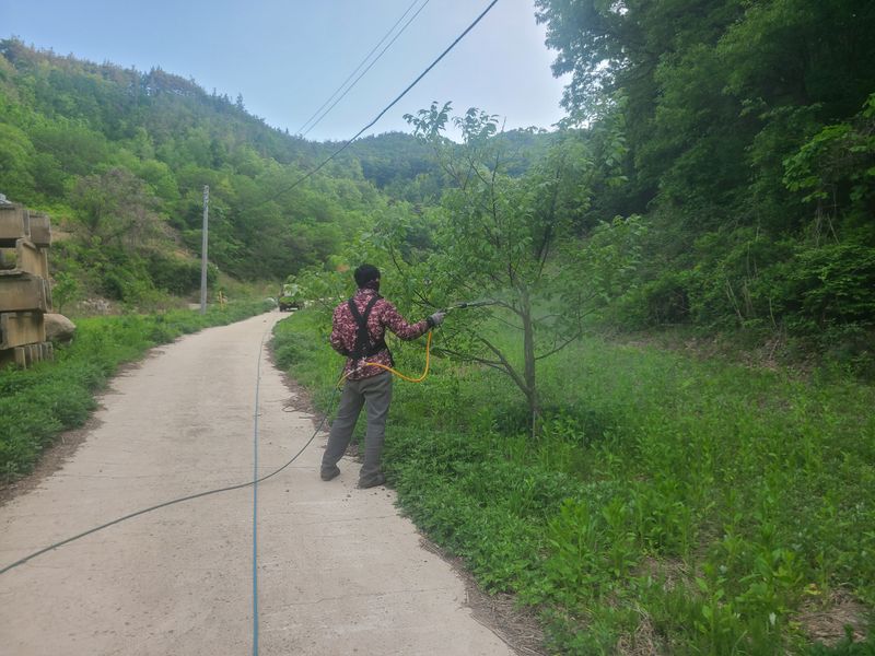 관핵외성호두나무는 유난히도 병충해에 약한 호두나무입니다 탄저병 소독중입니다