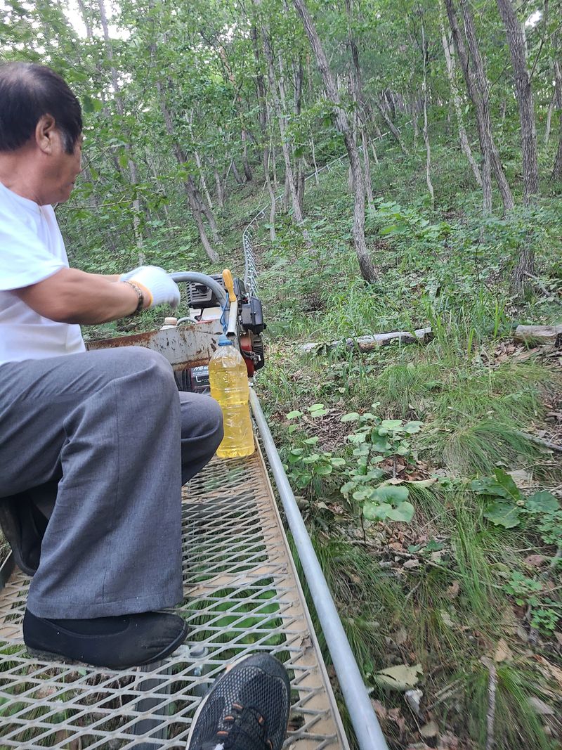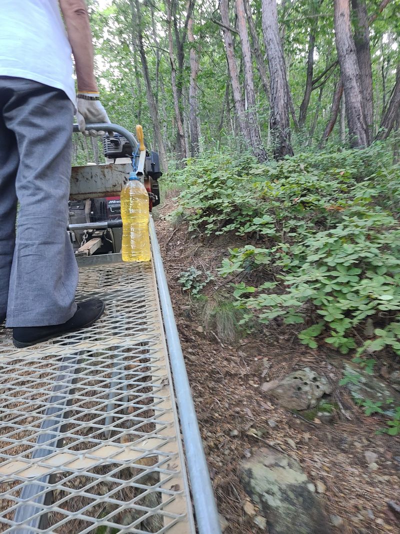 올해 자연산 능이 송이 채취를위한 모노레일 짐검을 했읍니다 오래동안사용을 하지않아서 기름공급 이않되어서 조금 고생했읍니다