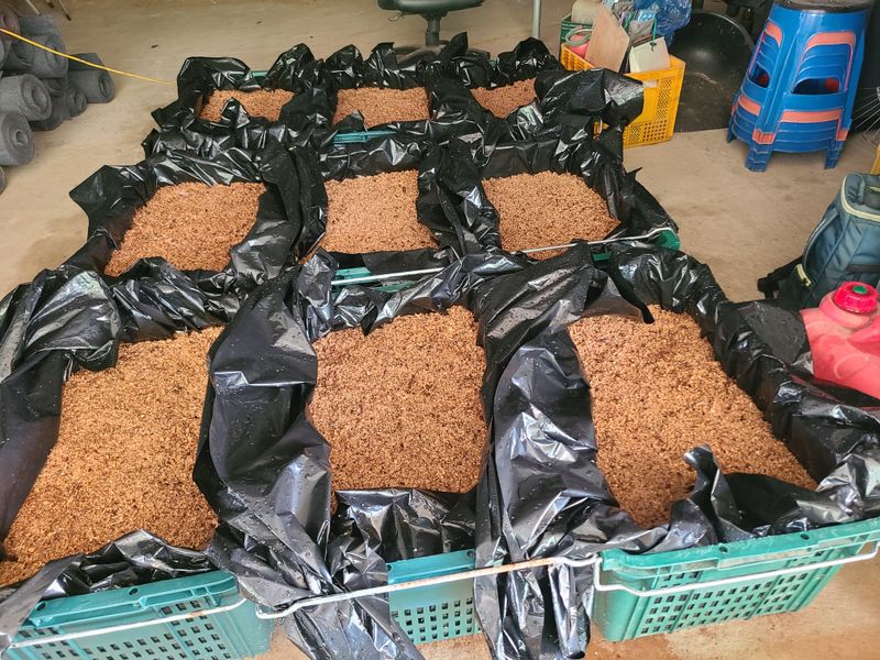 톱밥베지로 천마재배 신공법을 부여삼부농장이재영사장 10밖스 시험재배중 균사와 종마번식을관찰 중입니다 많은기대중입니다