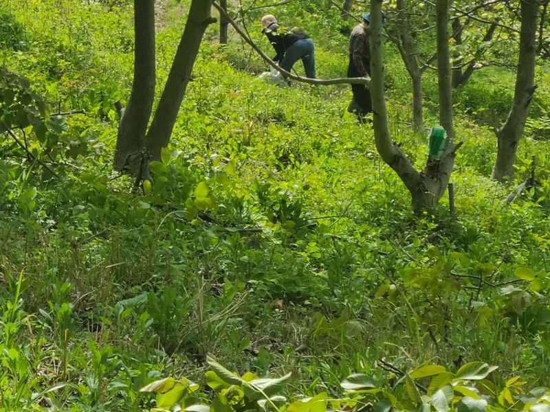 산양산삼밭 주변에 숲가꾸기를 하고 있읍니다 해가갈수록 수확량이 많이 없내요
