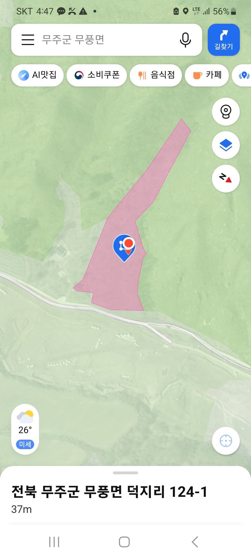 장마가시자되었다 어제부터비가너무많이왔다 여기저기산고 들에 피해가없는지 사펴보고있읍니다 상덕리산54-1