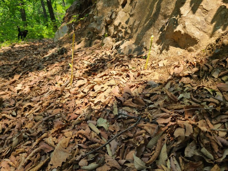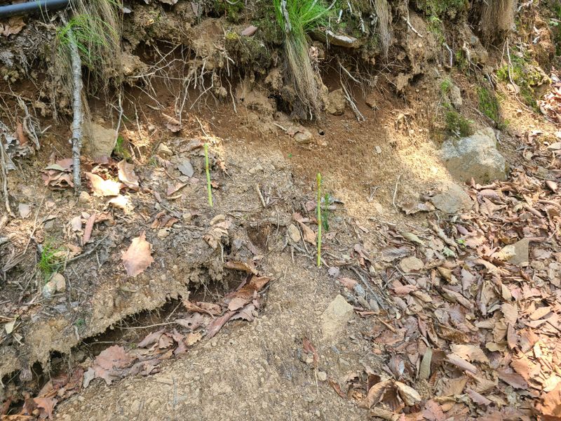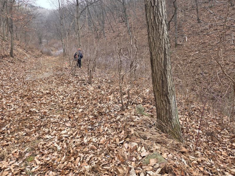산ㆍ작업로절계지에봄에산천마재배지에 생육상태 확인차농장에올라왔읍니다 낙옆 밎을확인해보니 50%정도 만족합니다