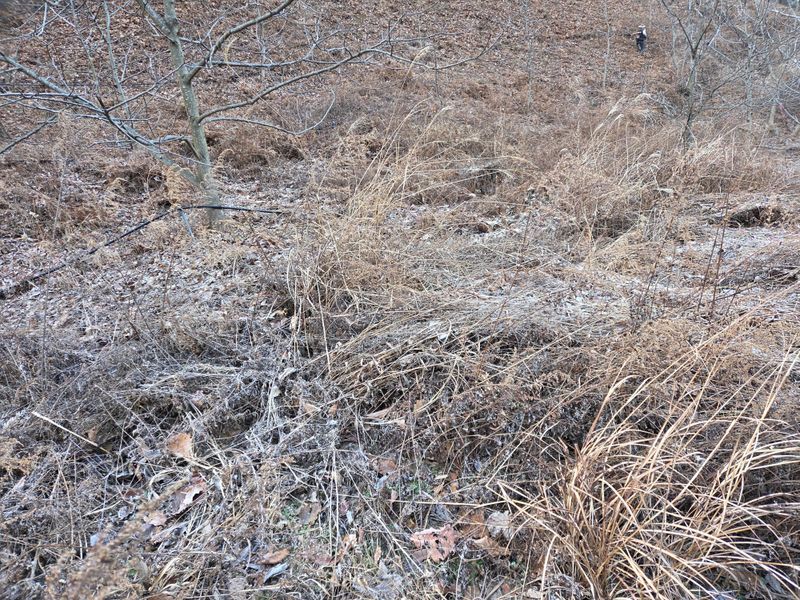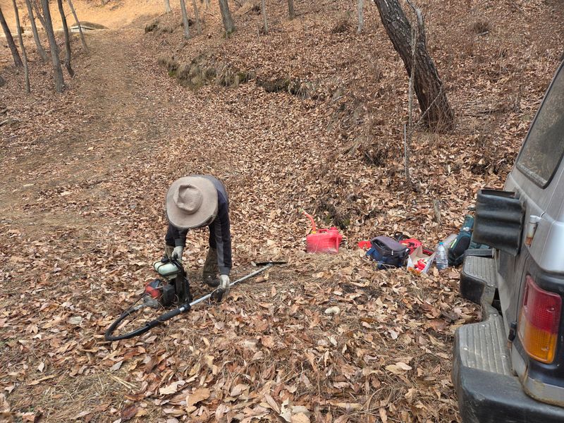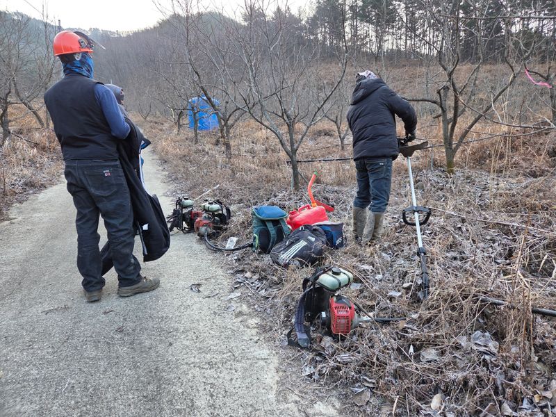 요즘 겨울날씨 치고는조금포근하내요 관리사부근호두나무밭에 예초기작업중입니다