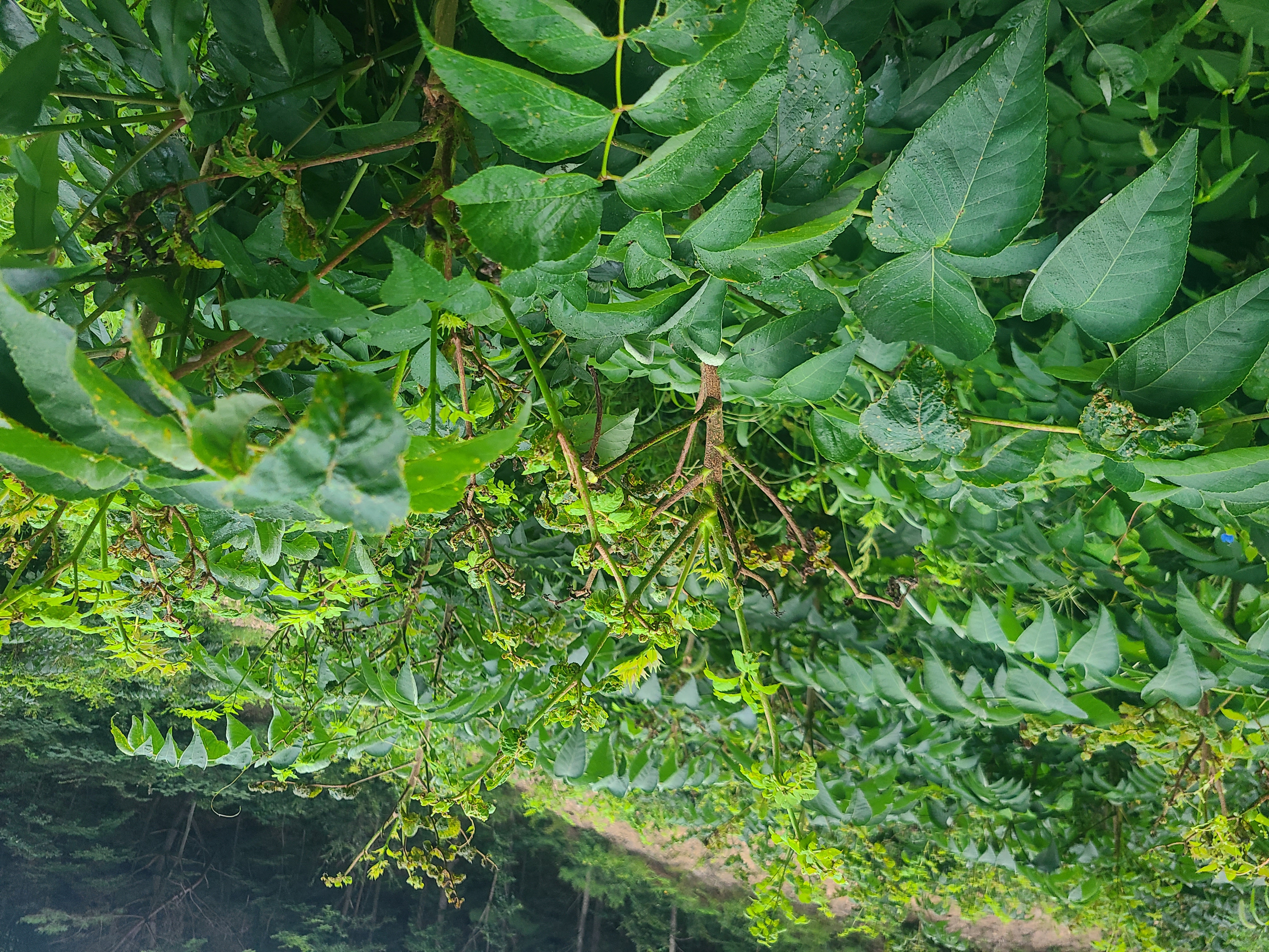 한주가 지나고 조용한 월요일이시작되었읍니다 어린호두나무는 긴장마비로 탄저병에 몸살을 하고 ᆢ 엄나무밭에 둘러보시 풀이너무많이 자라서 보기가 너무않촣네요 일손도부족하지만 ㆍ엄나무는이른봄에순을 췌취합니다 그래서 풀은가을 낙엽이진뒤 풀을 예초을해도됩니다 장덕리산21-1