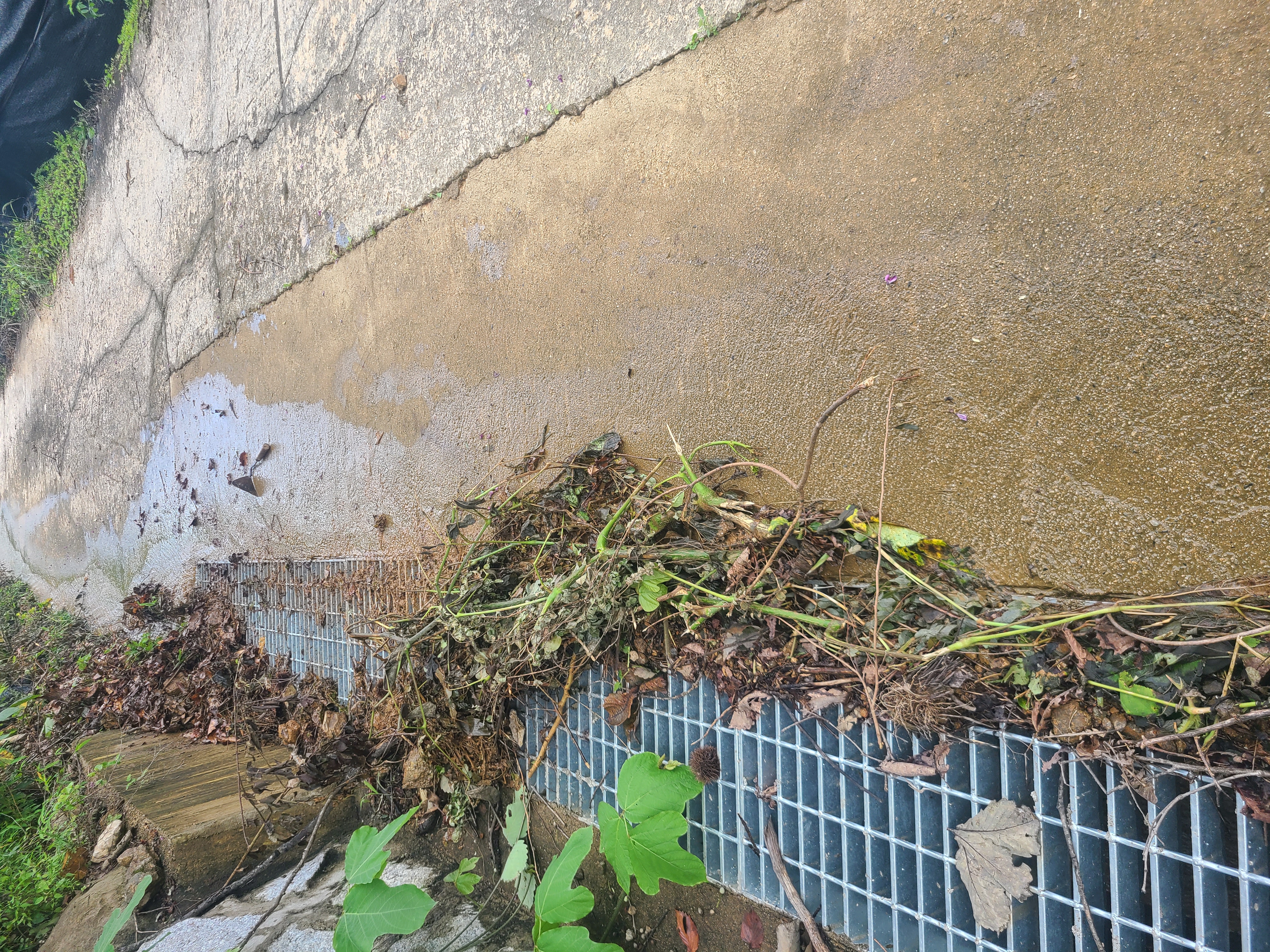 비내린후 표고재배사 가는길이 배수로가막혀 길이위험하게 회손되고 물이고이는 집수정은 토사가 가득차서 워험합니다 ㆍ