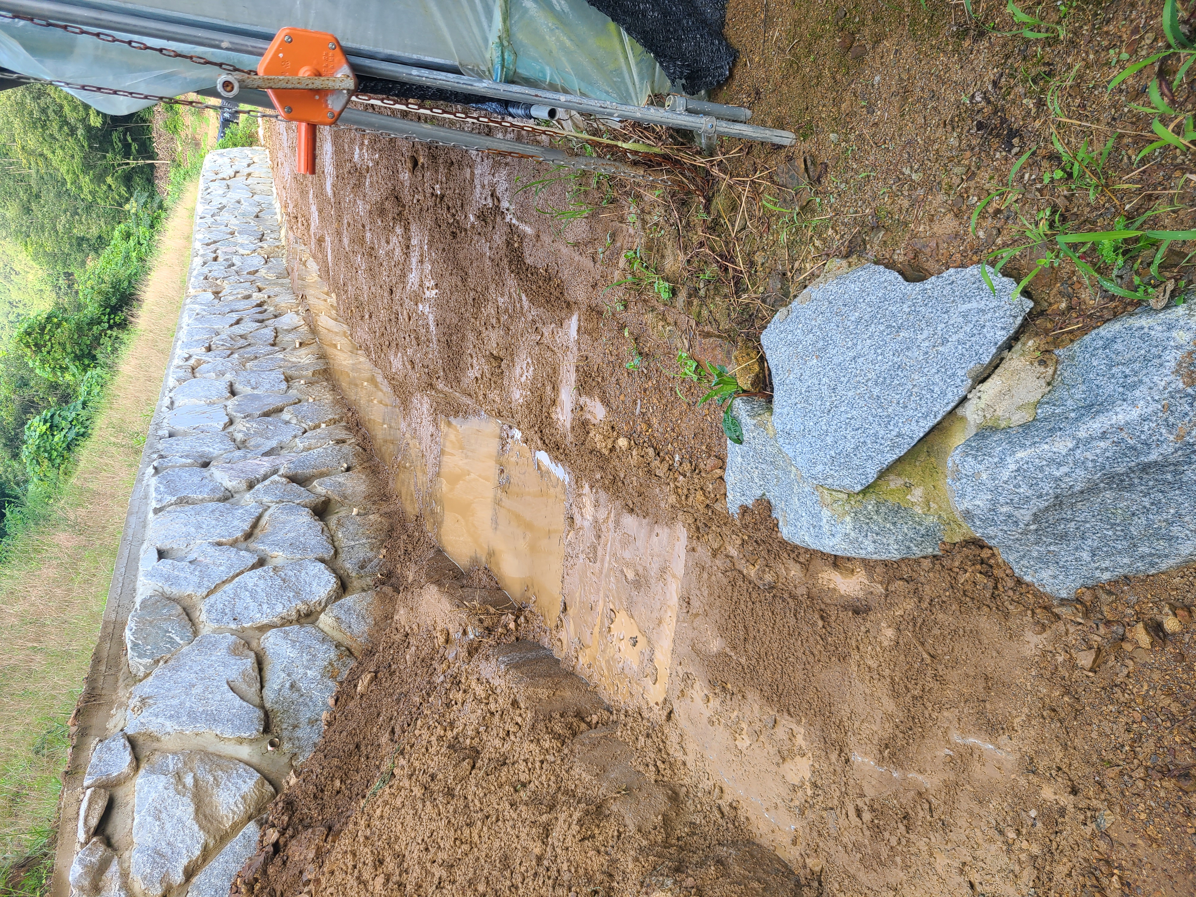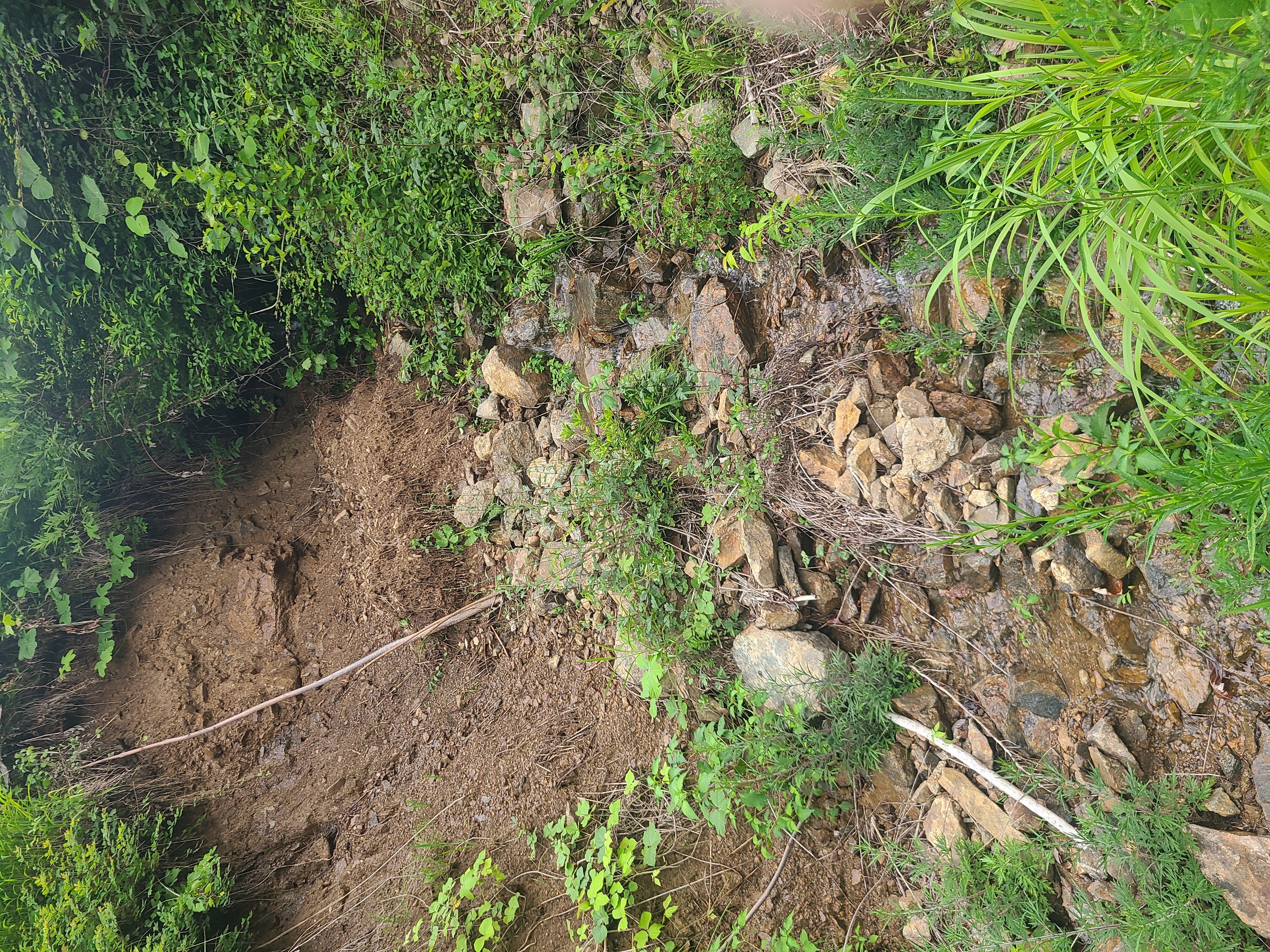 하늘이 빵구가난듯 장마비가 계속내린다 오늘세벽에 표고재배사 시착중 작으만한산사태로 물길이 박겨서 작업로가 파손직전이고 ᆢ 표고재배사위쪽 수로와 축대위상단이 물길때문에 축대가 위험한 상태다 빠른시간에 복구할예정입니다 장덕리산54-1 외 전표고재배사