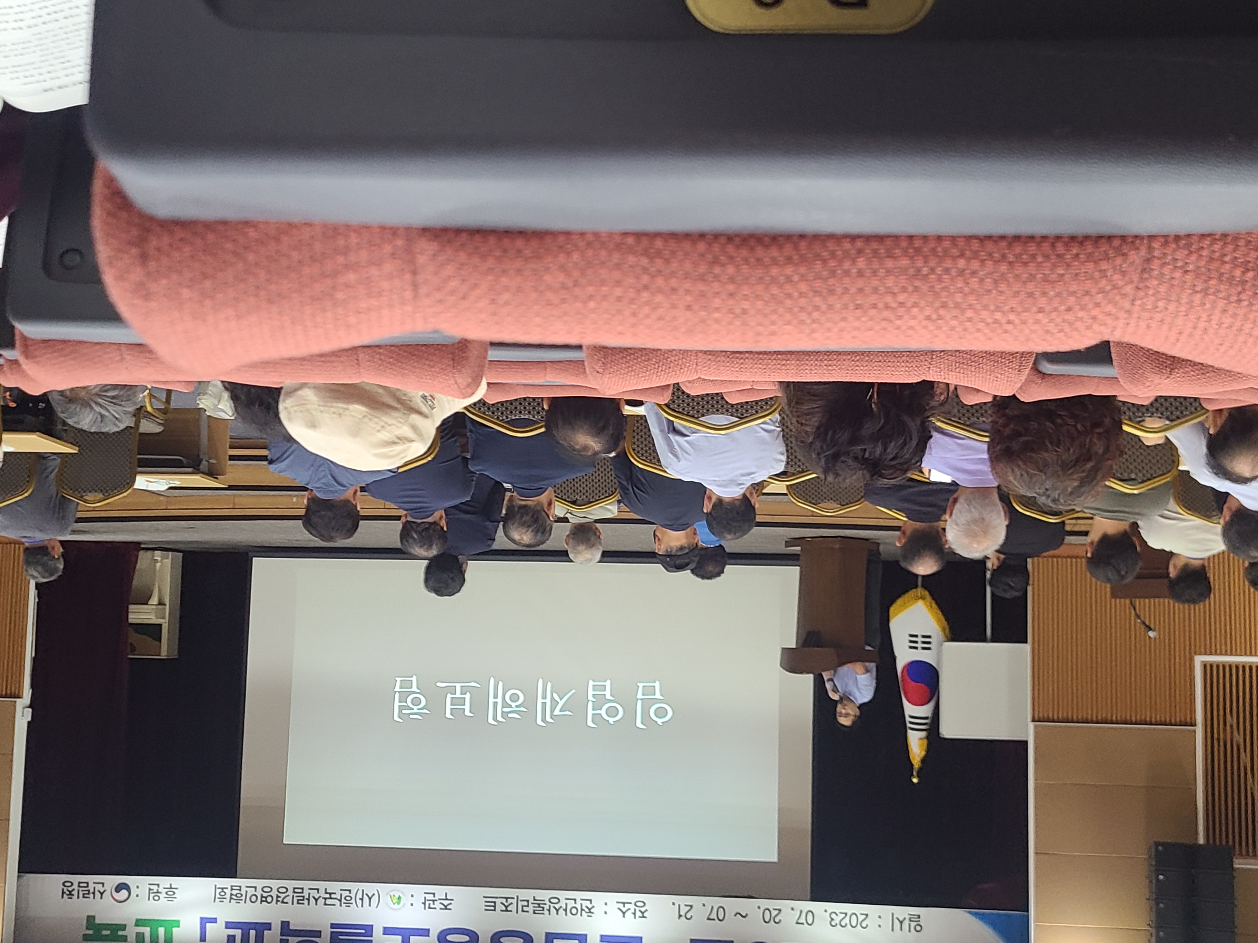 오늘은 친환경의무교육을 진안기술쎈타3층대강당에서 친환경의무교육을 받는중입니다 오전에는 표고재배사 근처에 예초작업을하고 2시부터4시까지 교육을받는 중입니다 진안기술쎈타 교육중입니다