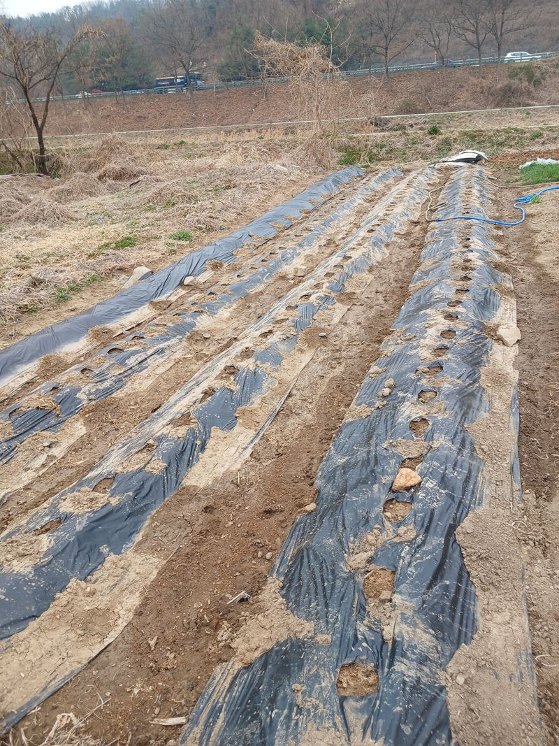 감자 심기 위해서 비닐제거작업 완료 하였음