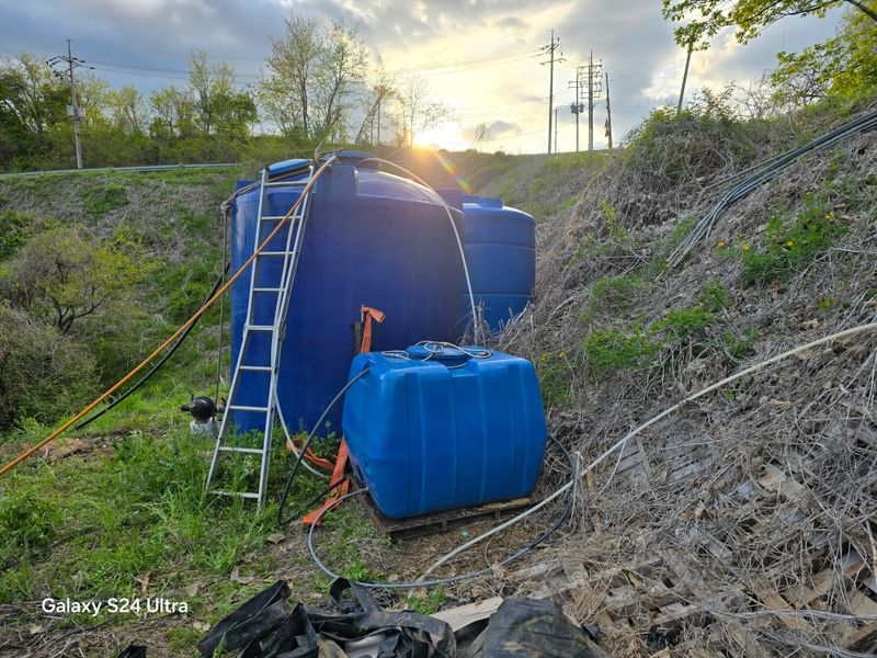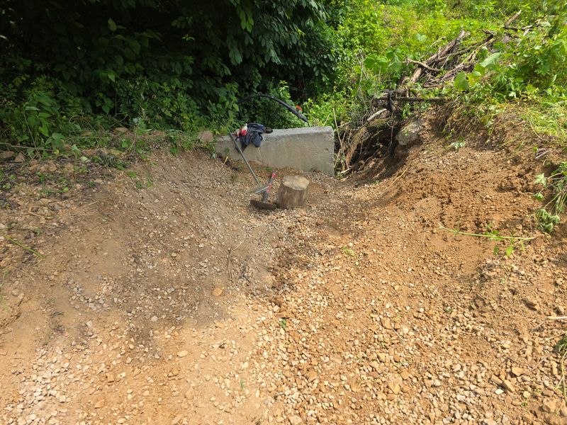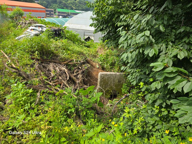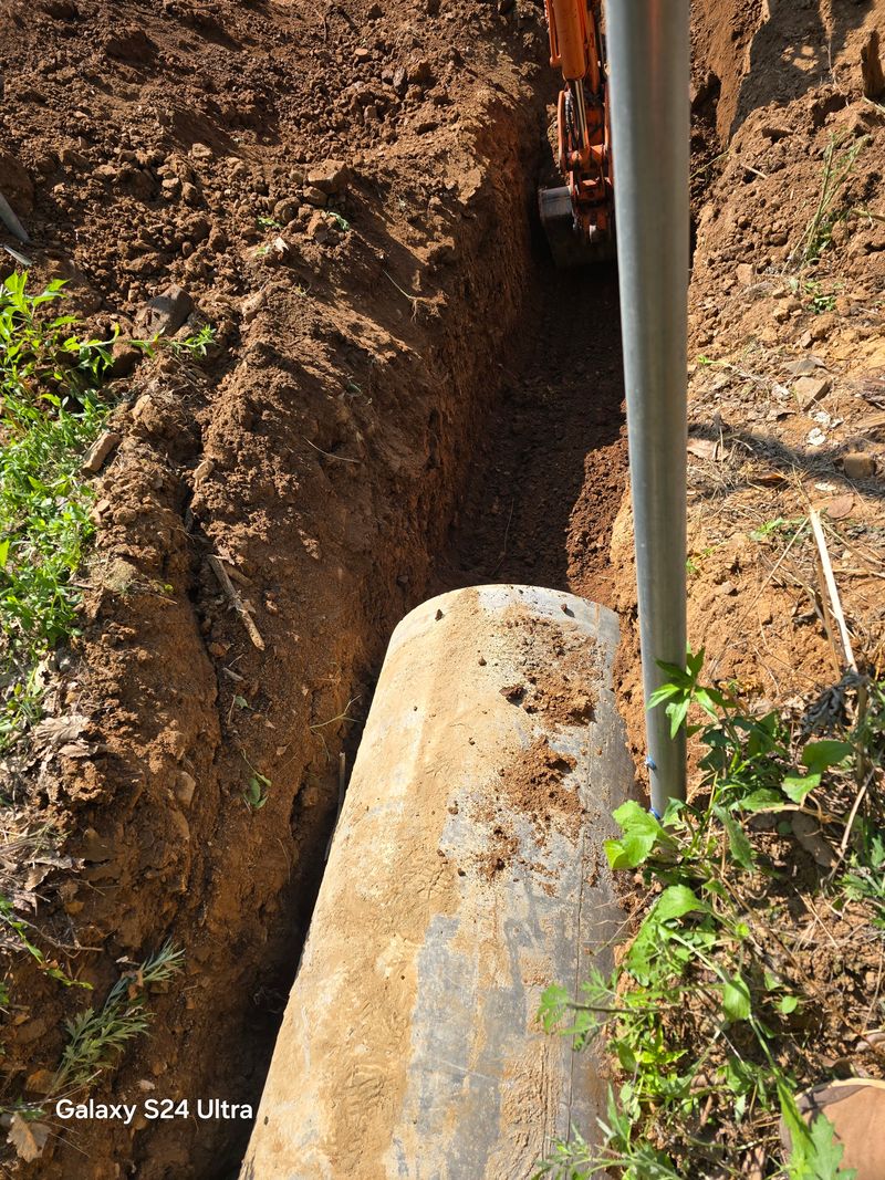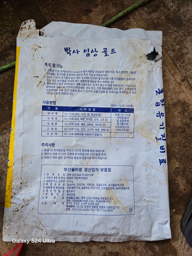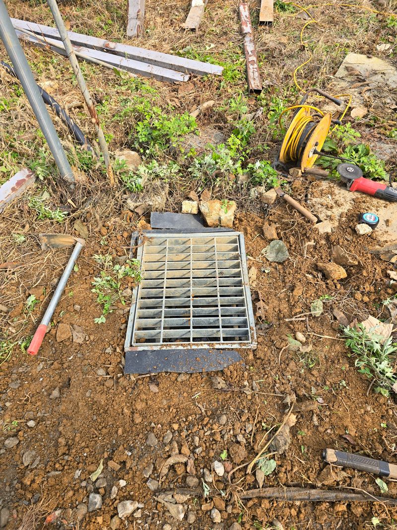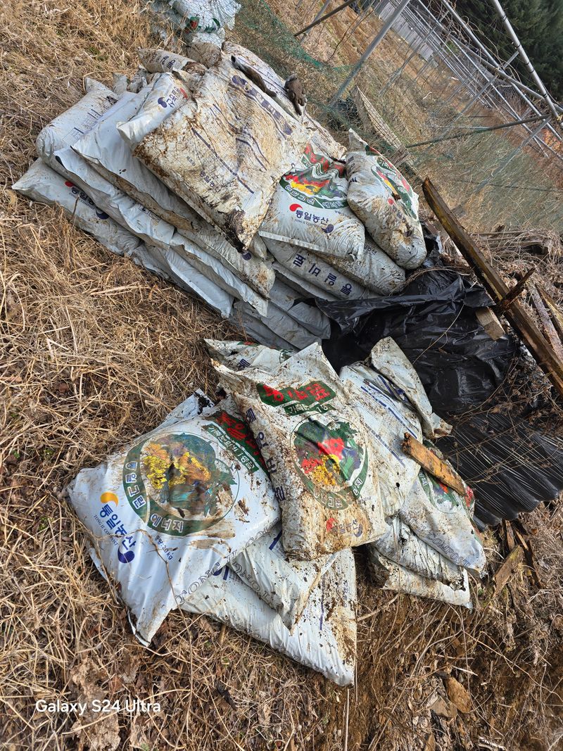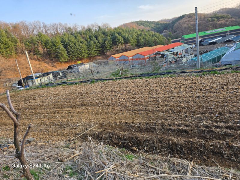 다래밭 관수 오전5시 농약살포 윰관 800m.m 산에서 내려오는물 수용공사. 윗 산주 공사