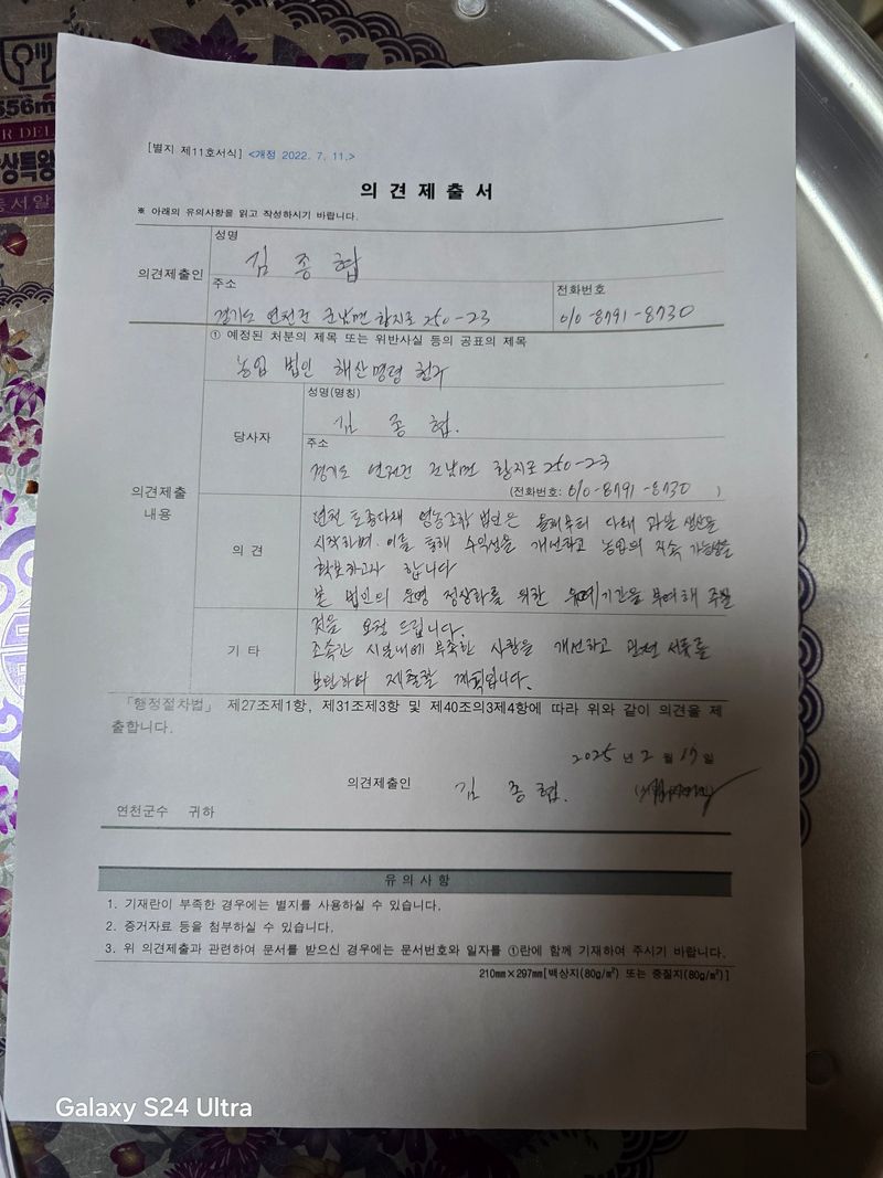 군청 법인.갱신신청서 제출 다래 삽목하여 땅에 뭇음