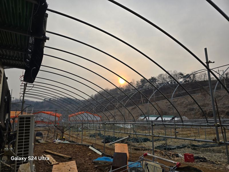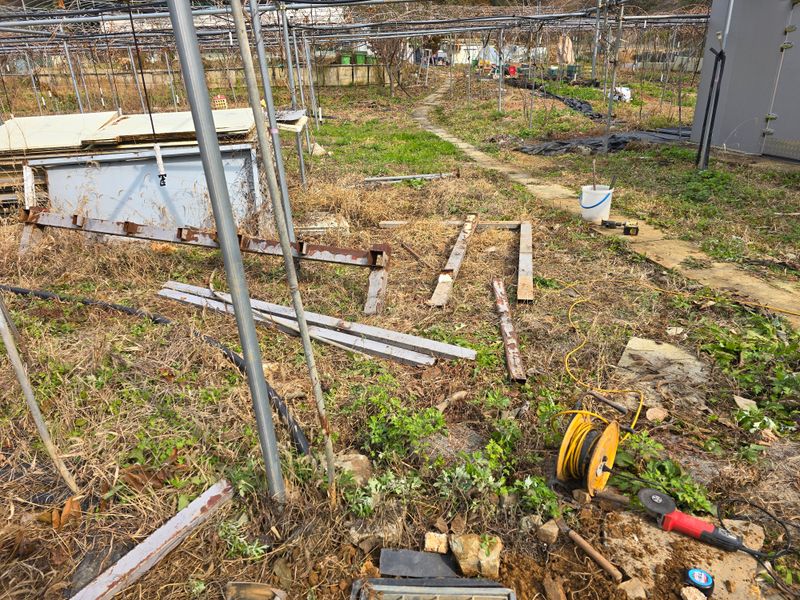 다래 삽목 청연 37주 대보36주 2번밭. 하우스 지지대 보수작업