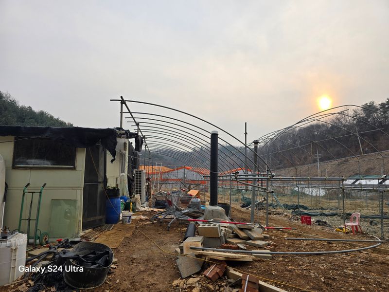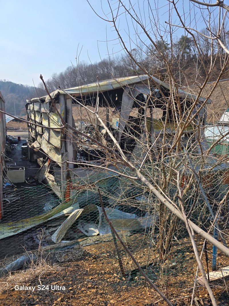 아래집 창고 전기누전으로. 화재 다래농장 에도화재. 피해붐