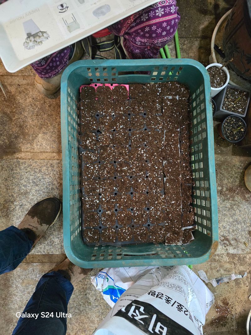 명이나물 씨앗 150주파종 관수자제 어제저녁 농장도착