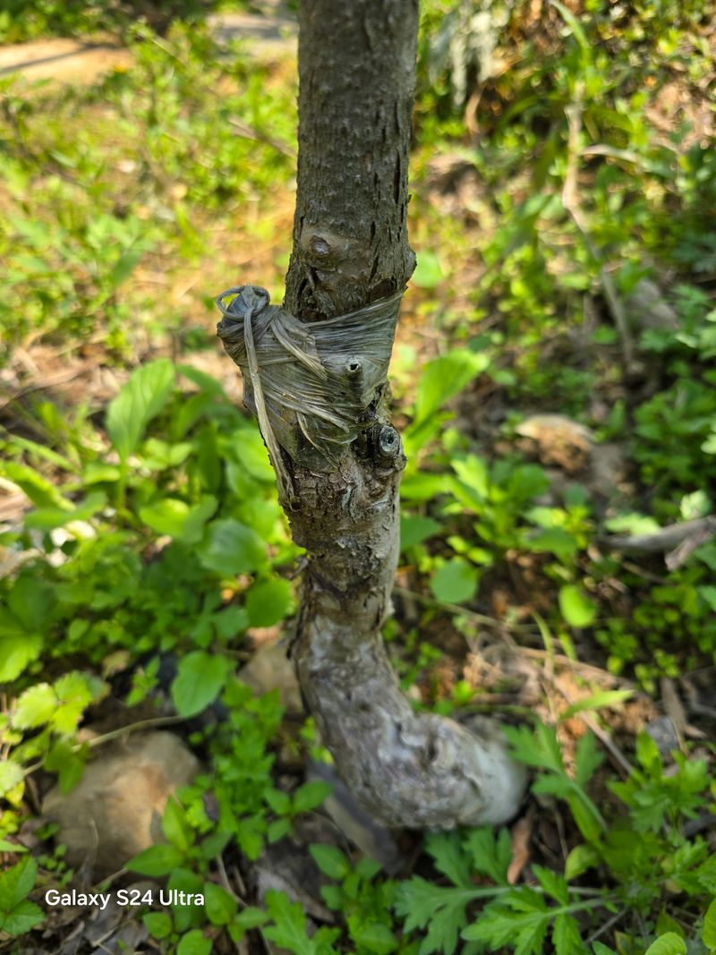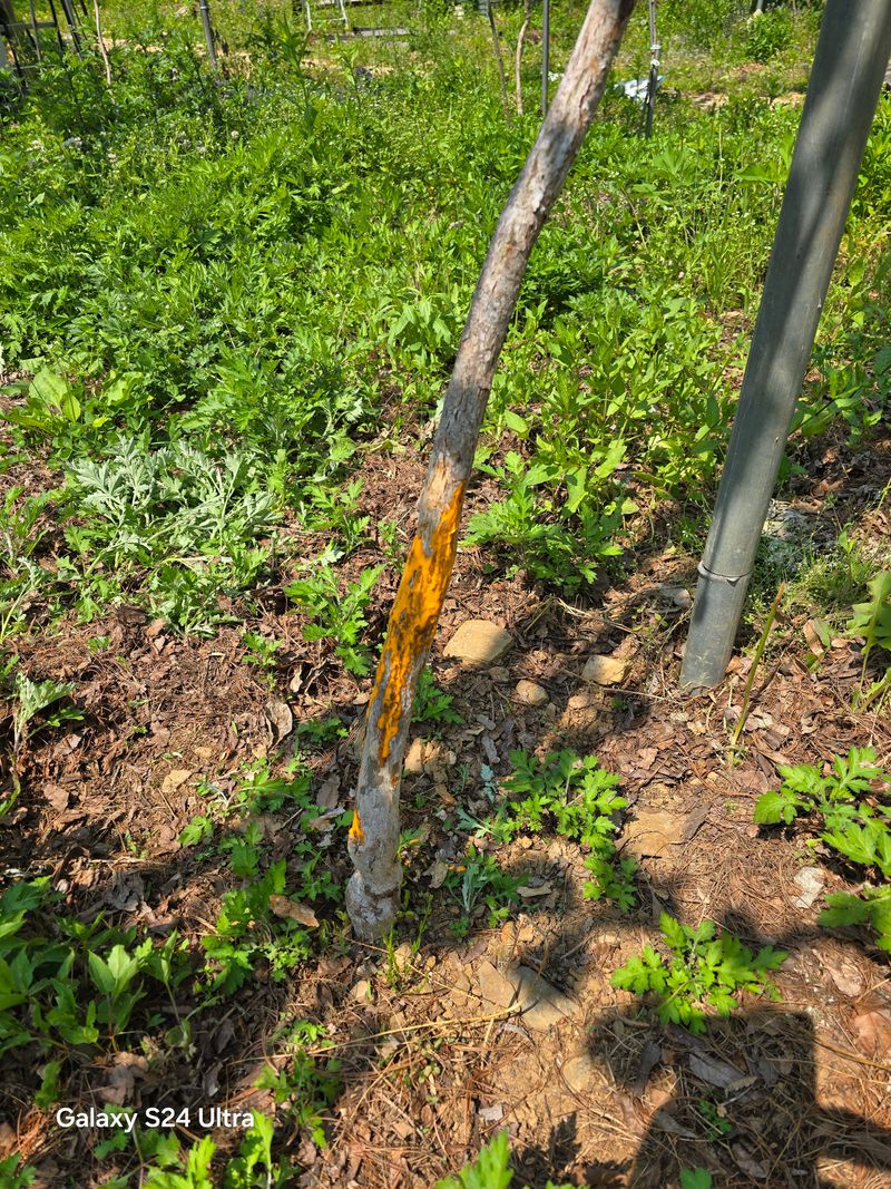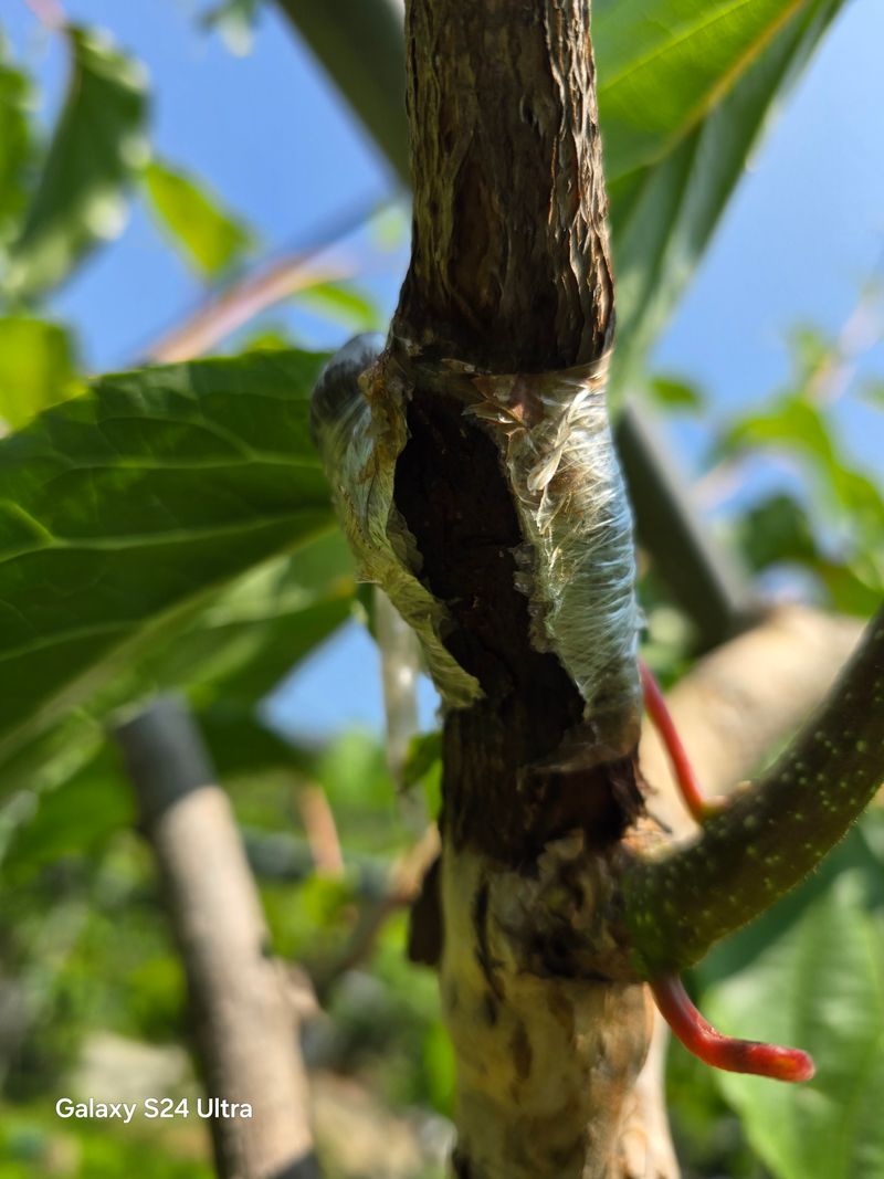 다래 나무 밎둥에 수관터짐 증상생김 삽목 마감제 발라줌