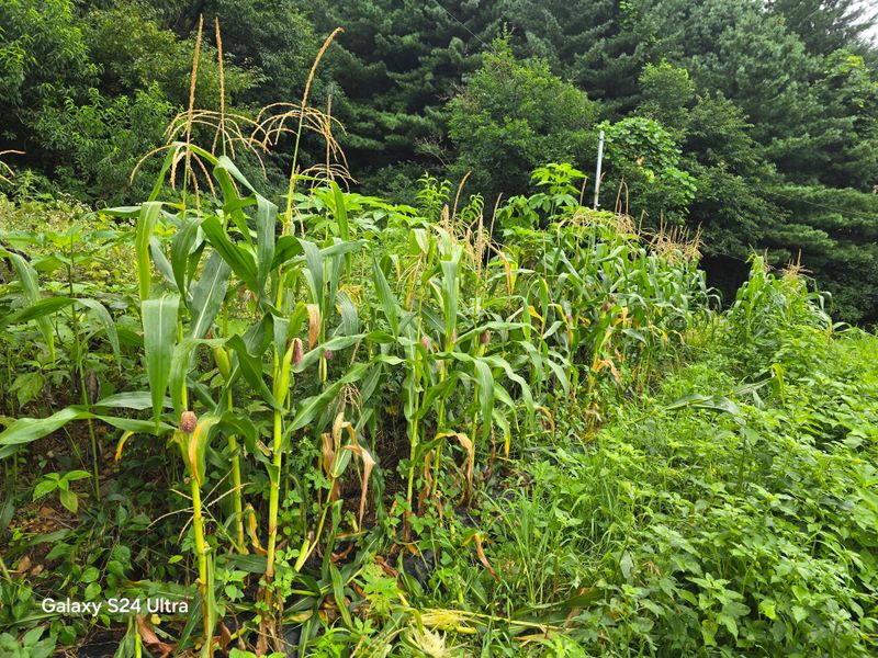 다래 나무 보식 청구 12 그루 대보. 24 존귀. 51 합. 87그루 옥수수 밭 들집승 할퀴고간. 현장